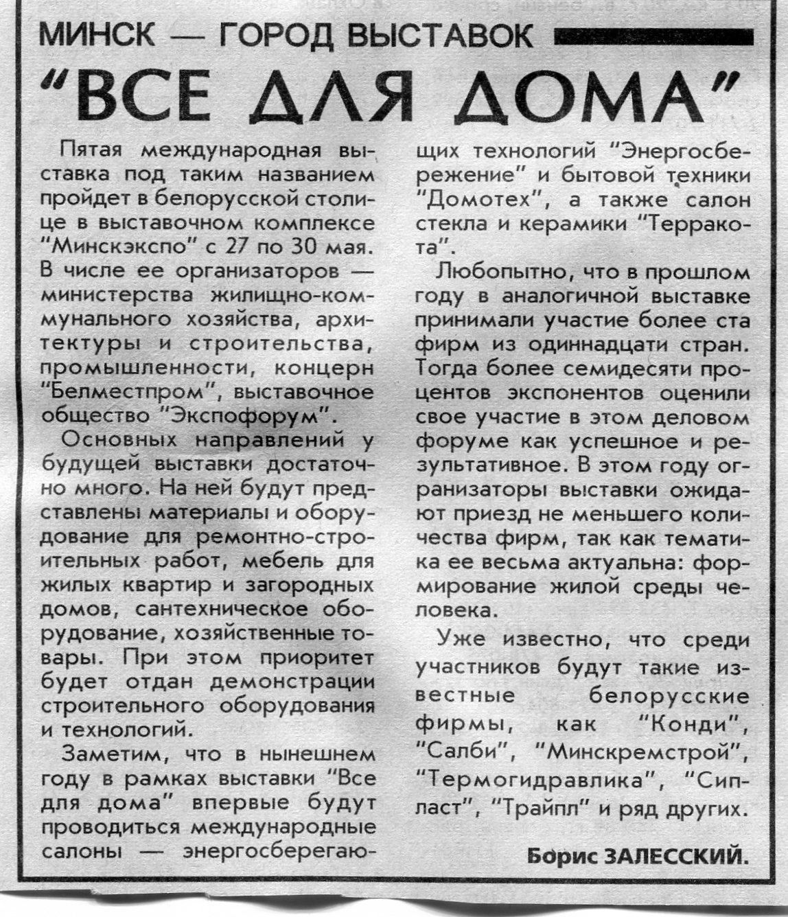 Залесский, Б. "Все для дома" / Б. Залесский // Вечерний Минск. - 1997. - 13 мая.