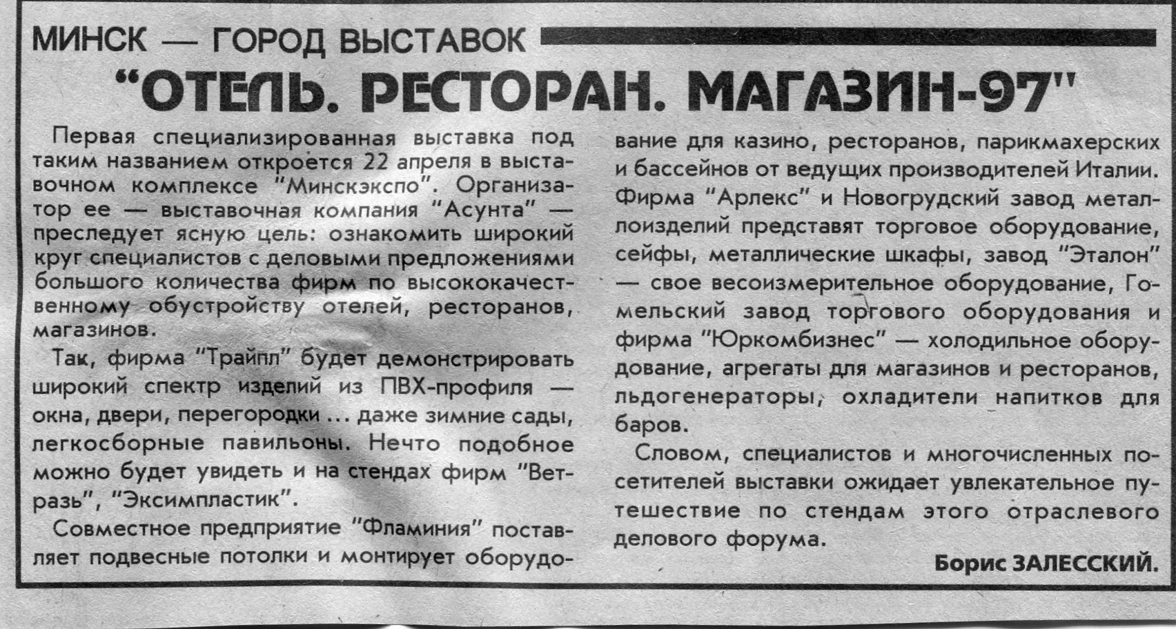 Залесский, Б. "Отель. Ресторан. Магазин-97" / Б. Залесский // Вечерний Минск. - 1997. - 18 апр.