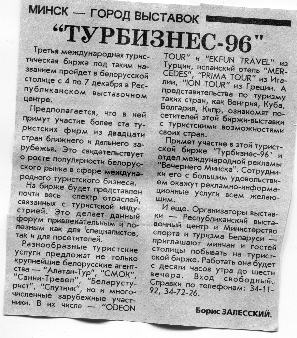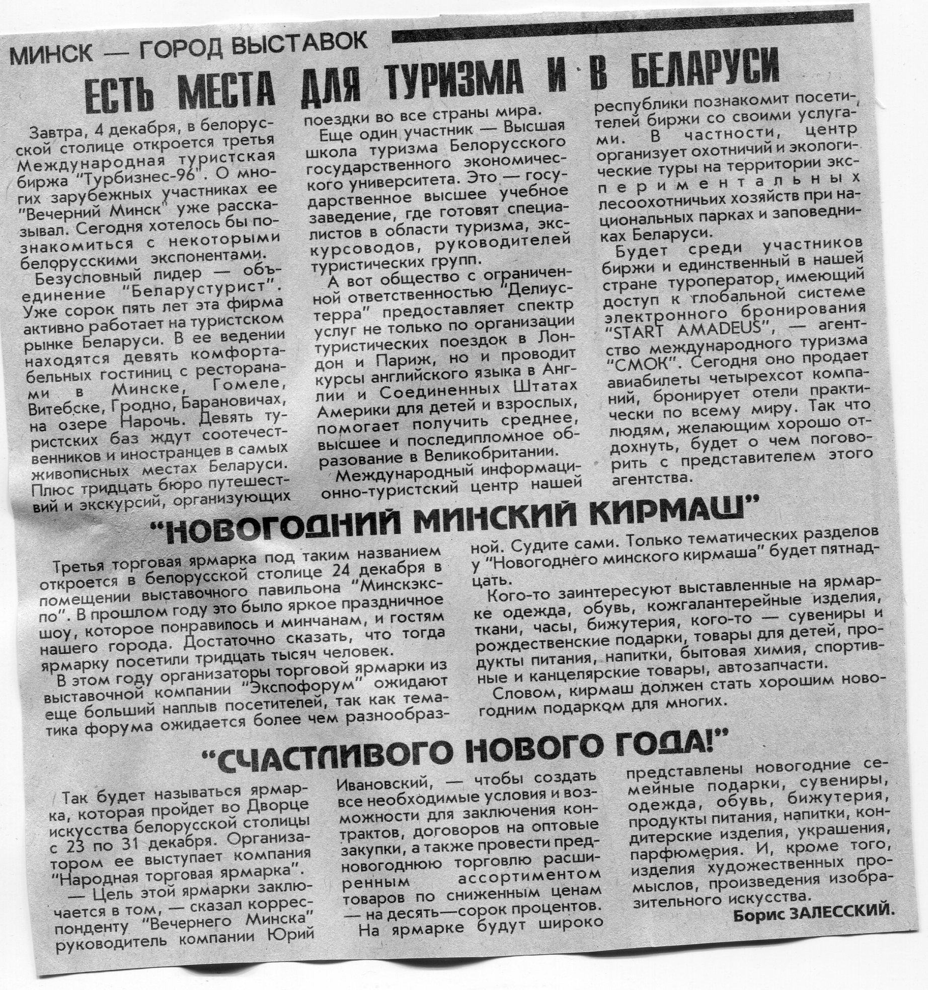 Залесский, Б. "Турбизнес-96" / Б. Залесский // Вечерний Минск. - 1996. - 19 нояб.