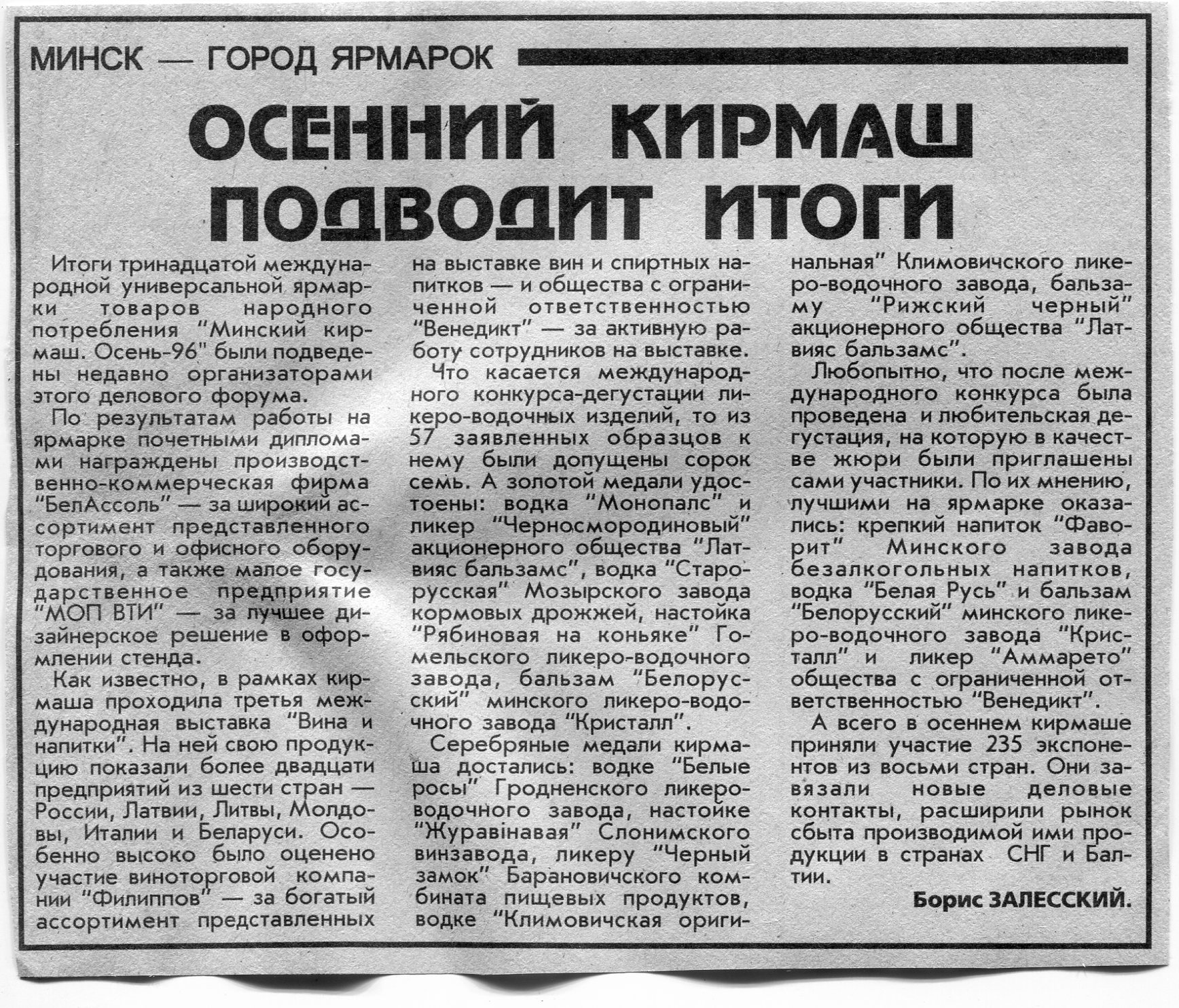 Залесский, Б. "Интерпродукт-96" / Б. Залесский // Вечерний Минск. - 1996. - 24 окт.