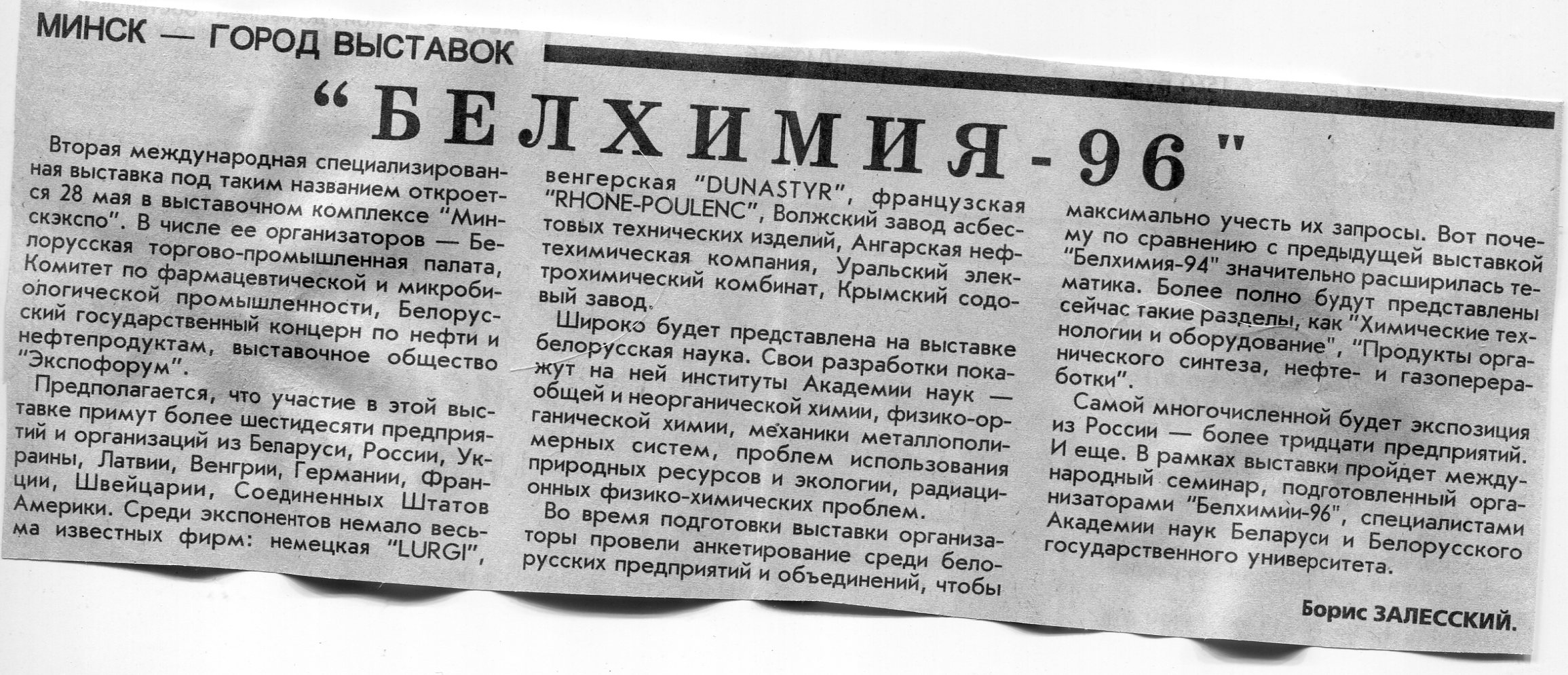 Залесский, Б. "Белхимия-96" / Б. Залесский // Вечерний Минск. - 1996. - 22 мая.