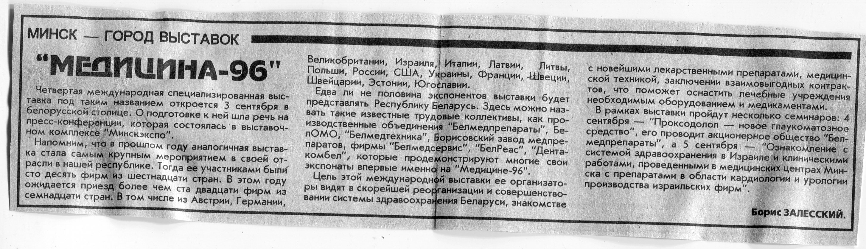 Залесский, Б. "Медицина-96" / Б. Залесский // Вечерний Минск. - 1996. - 27 авг.