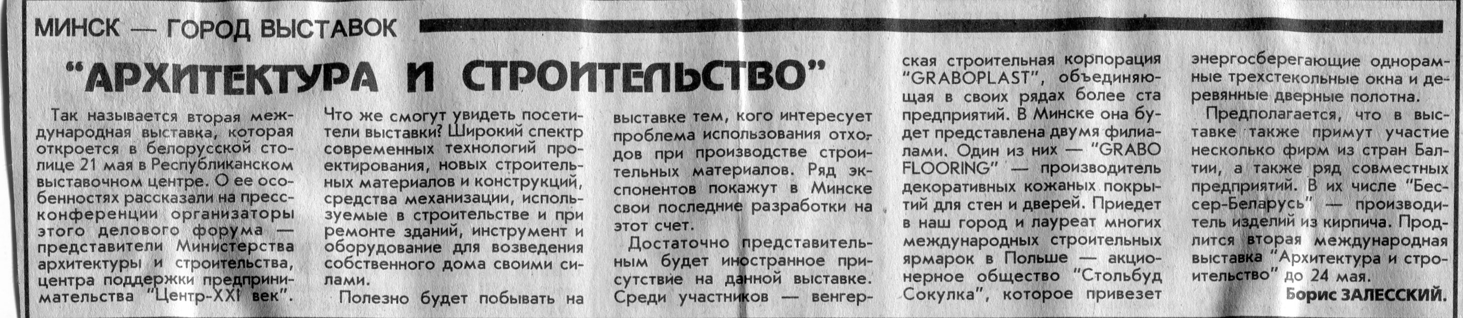 Залесский, Б. "Архитектура и строительство" / Б. Залесский // Вечерний Минск. - 1996. - 15 мая.