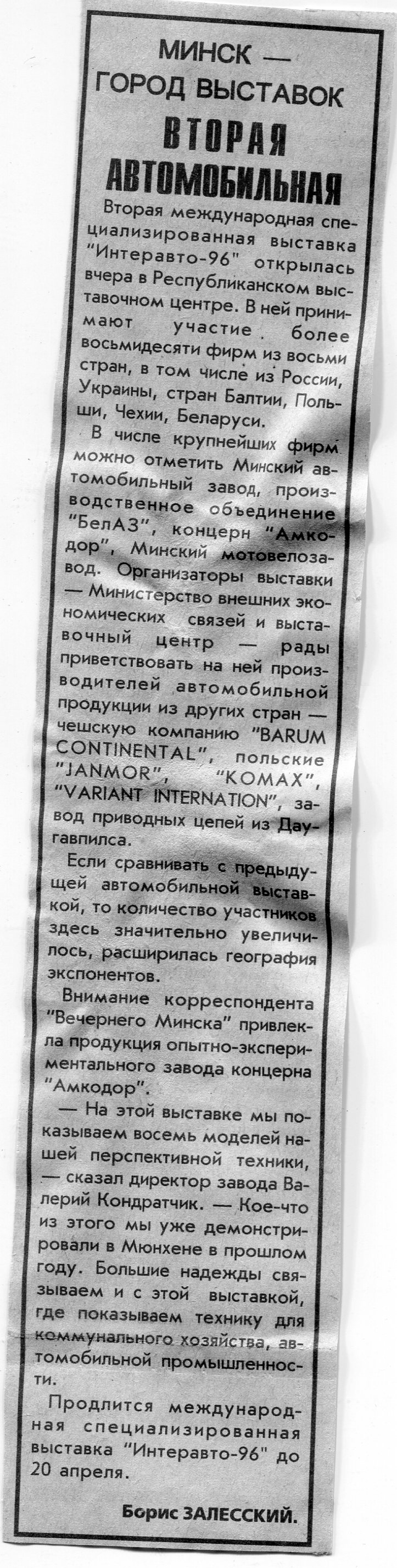 Залесский, Б. Московские заводы - в белорусской столице / Б. Залесский // Вечерний Минск. - 1996. - 10 июл.
