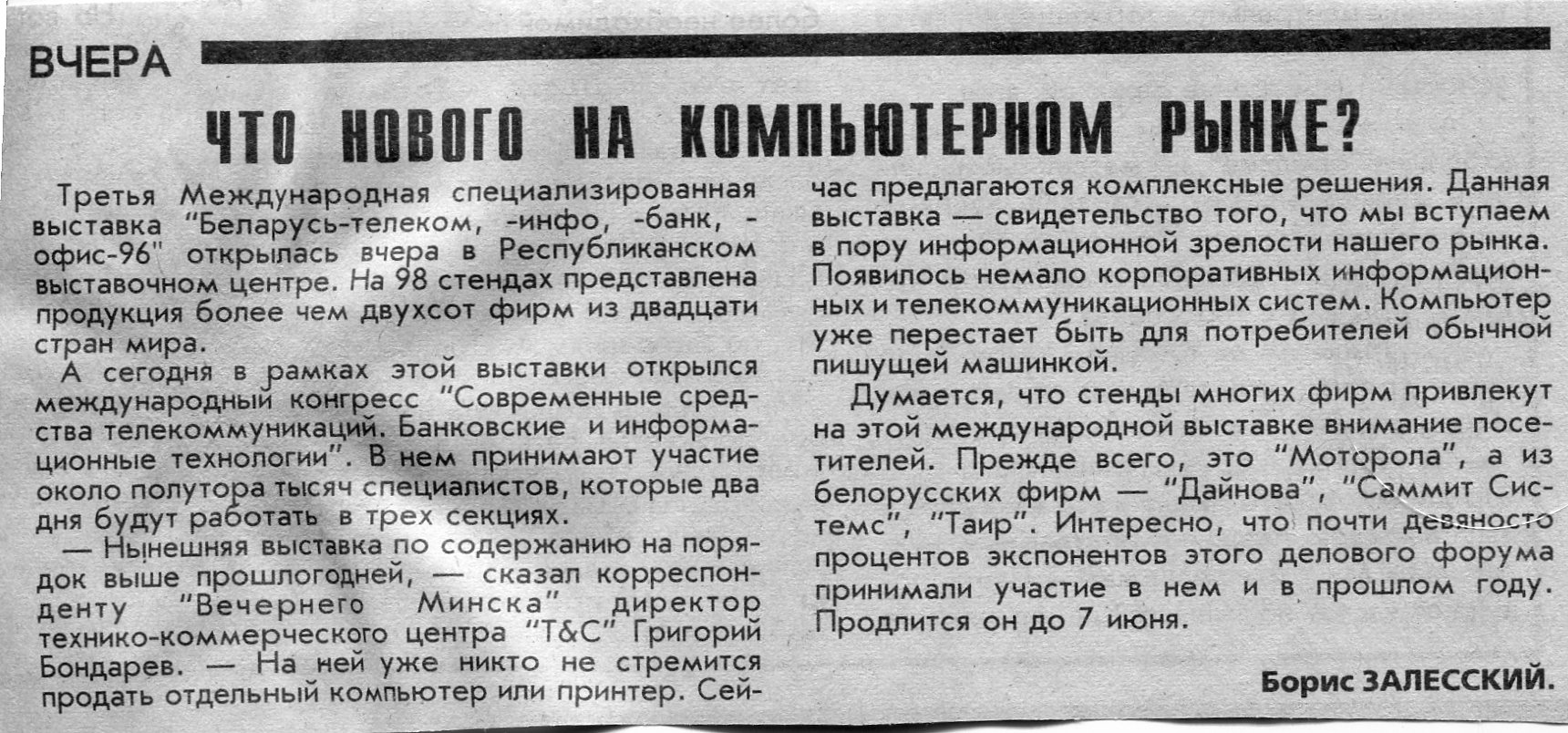 Залесский, Б. Что нового на компьютерном рынке? / Б. Залесский // Вечерний Минск. - 1996. - 5 июн.