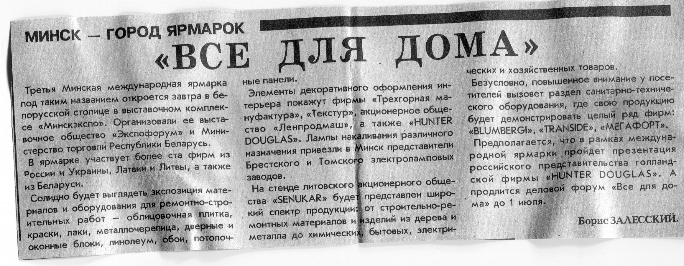 Залесский, Б. "Все для дома" / Б. Залесский // Вечерний Минск. – 1995. – 27 июн.
