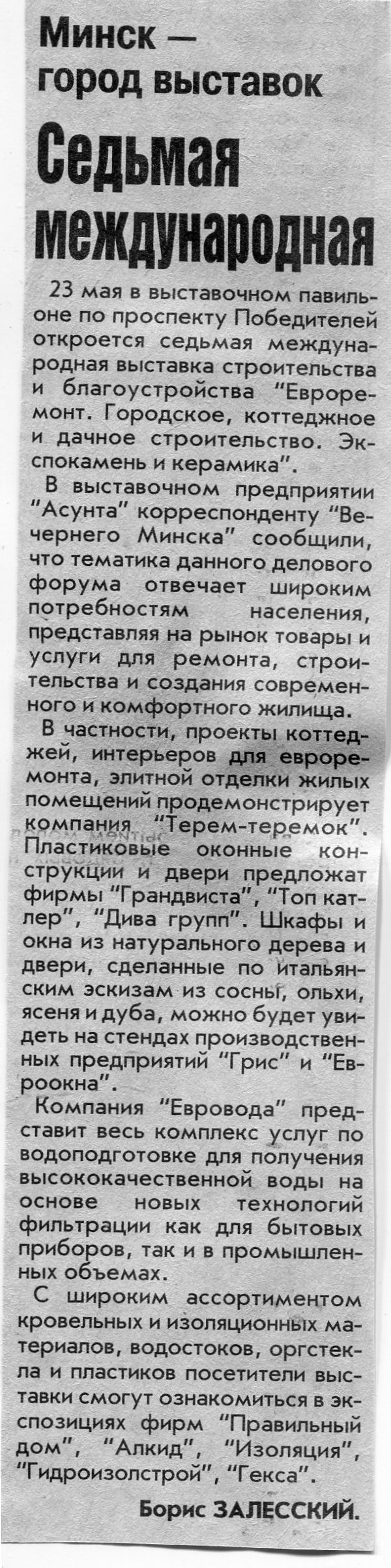 Залесский, Б. "Белорусская строительная неделя-2006" / Б. Залесский // Вечерний Минск. – 2006. – 24 апр.