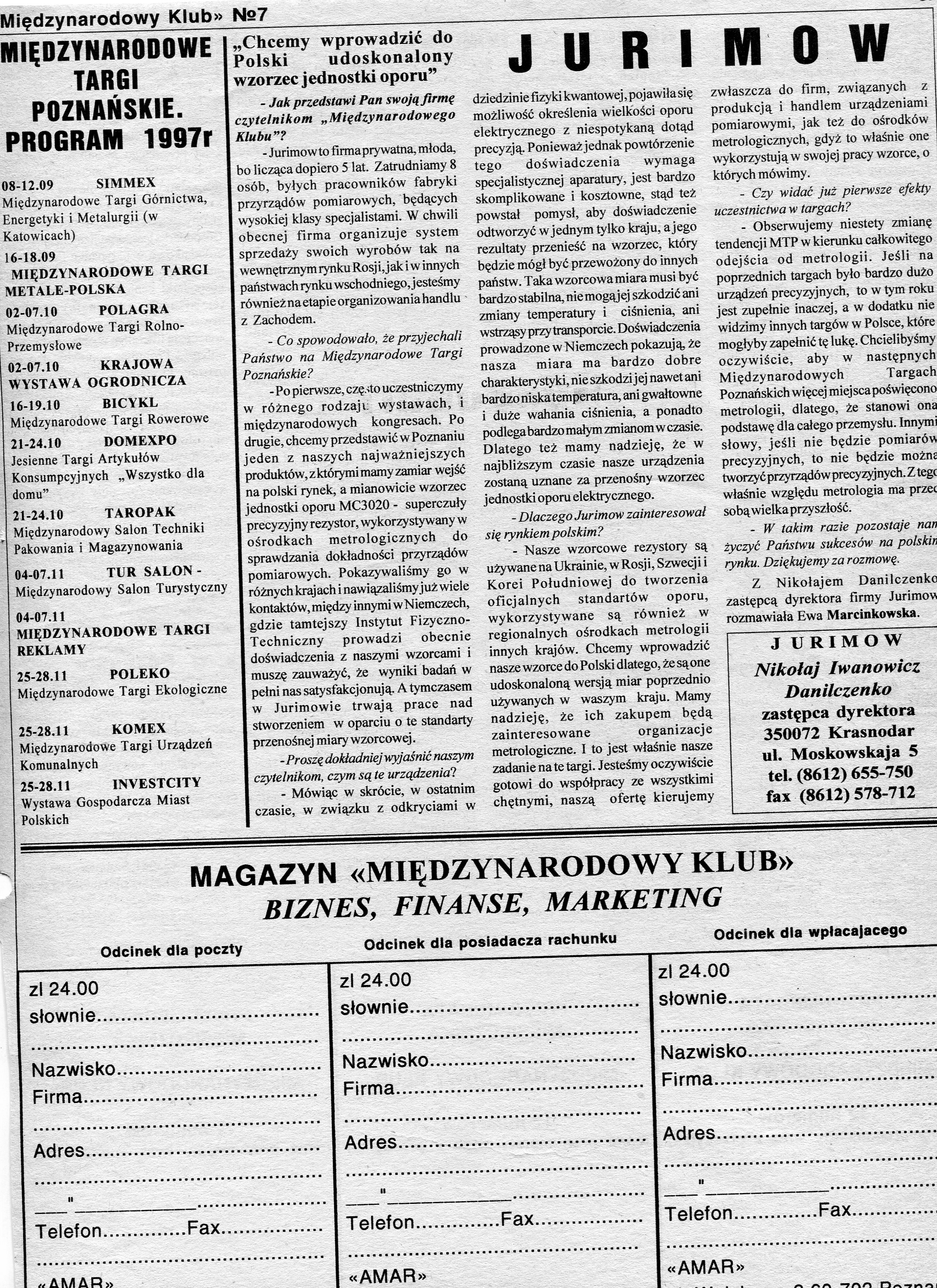 Miedzynarodowy Klub. - 1997. - №7. - С. 5.