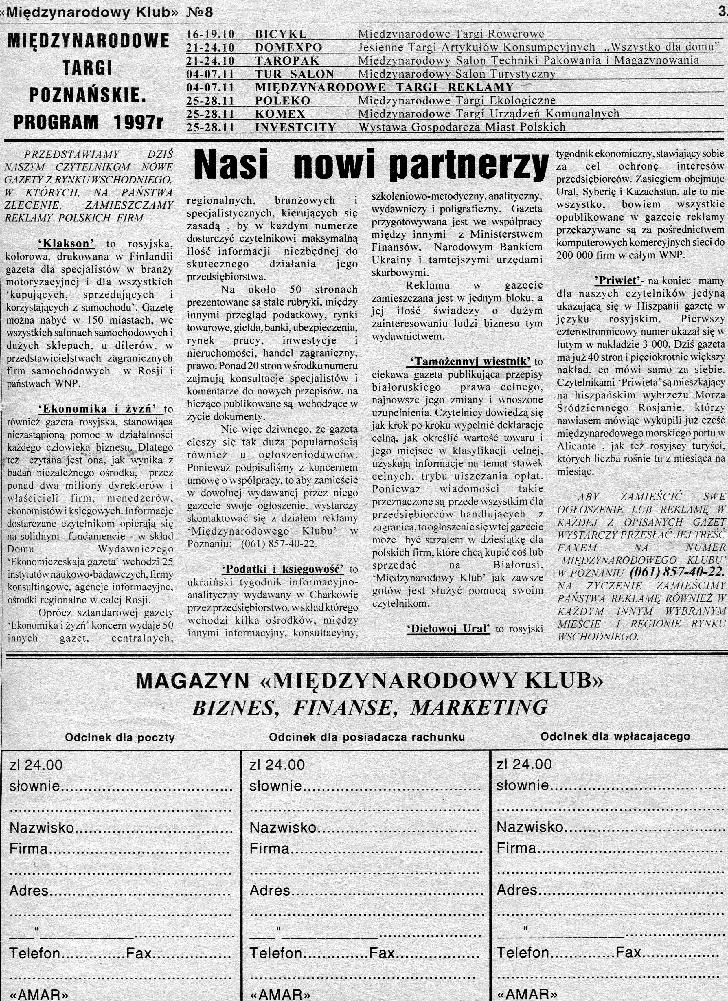 Miedzynarodowy Klub. - 1997. - №8. - С. 3.