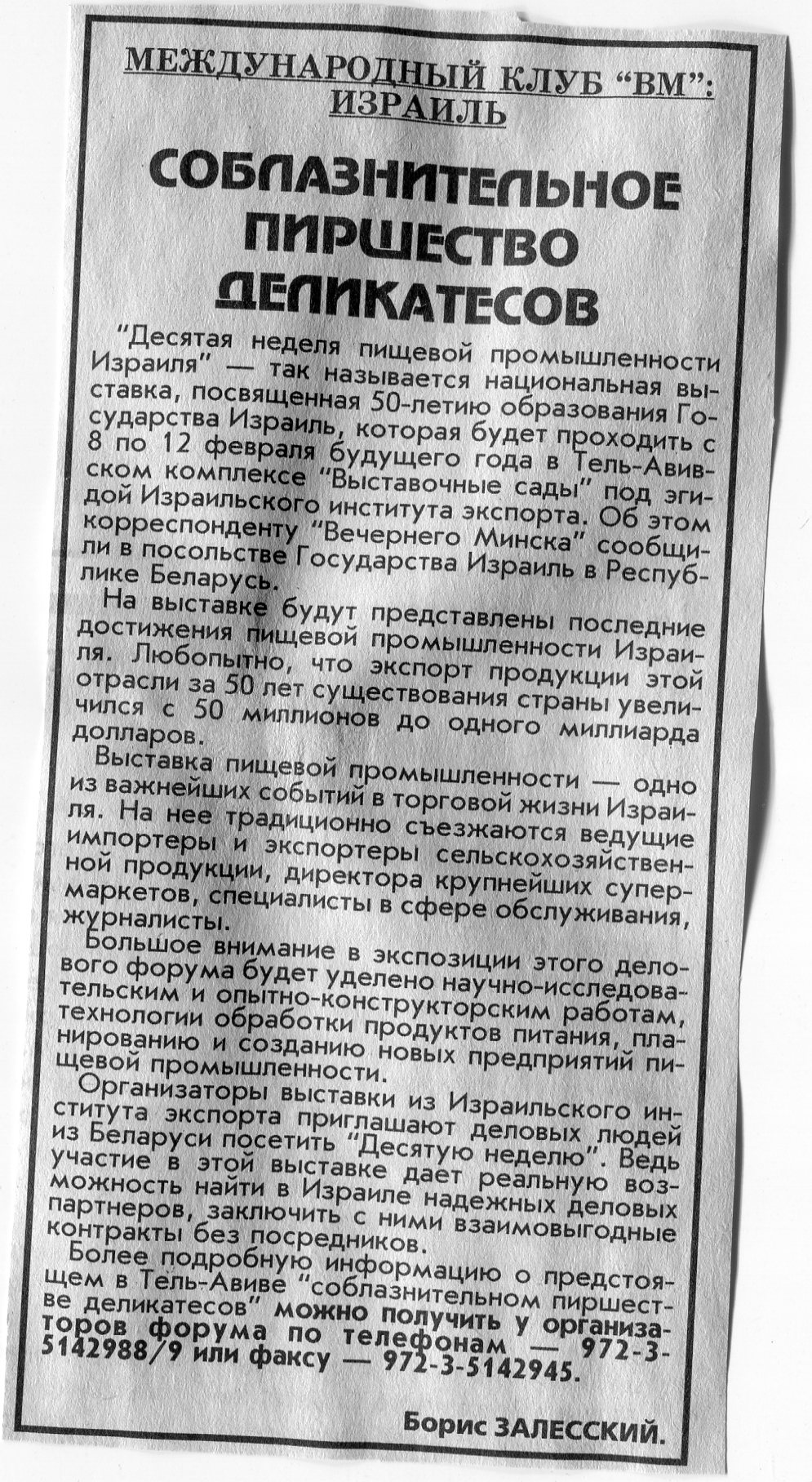 Залесский, Б. Соблазнительное пиршество деликатесов / Б. Залесский // Вечерний Минск. - 1997. - 6 окт.