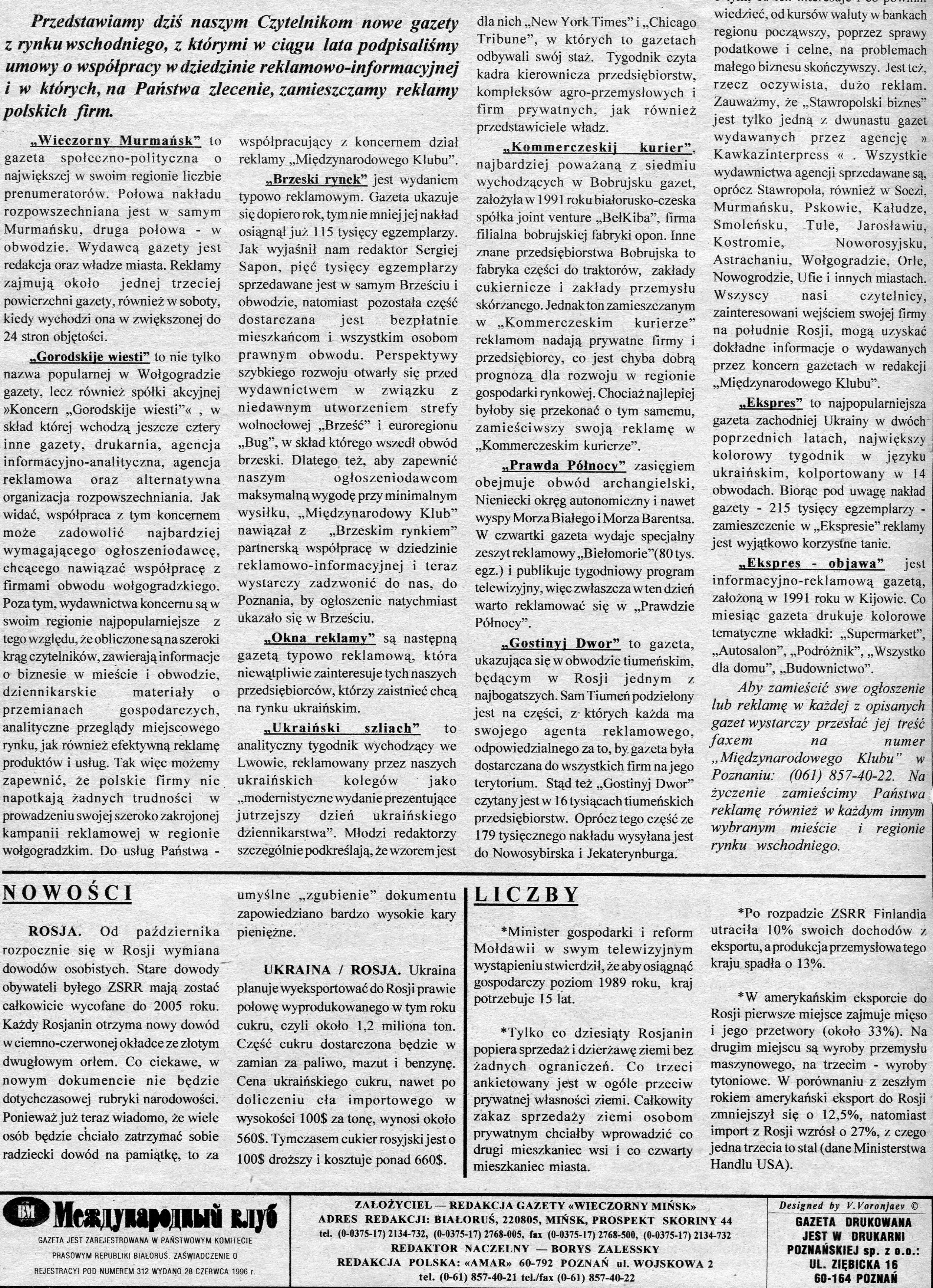 Miedzynarodowy Klub. - 1997. - №8. - С. 5.