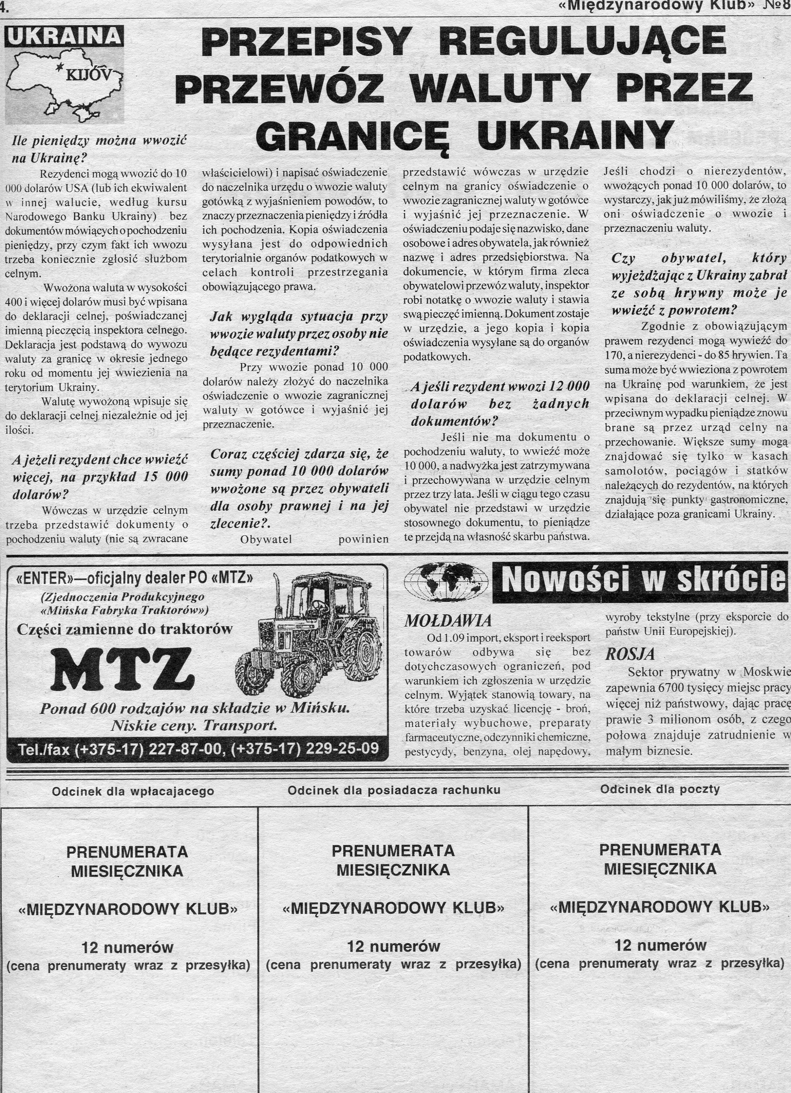 Miedzynarodowy Klub. - 1997. - №8. - С. 4.