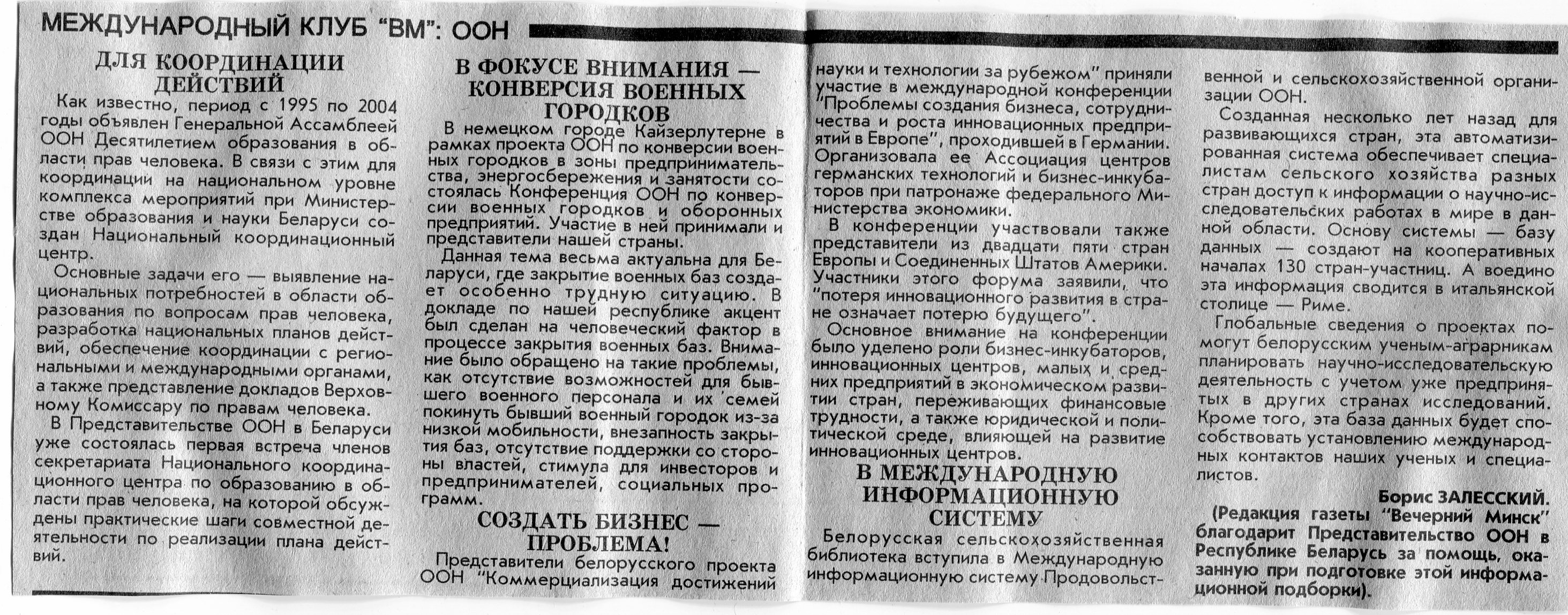 Залесский, Б. Международный клуб "ВМ": ООН / Б. Залесский // Вечерний Минск. - 1997. - 28 янв.