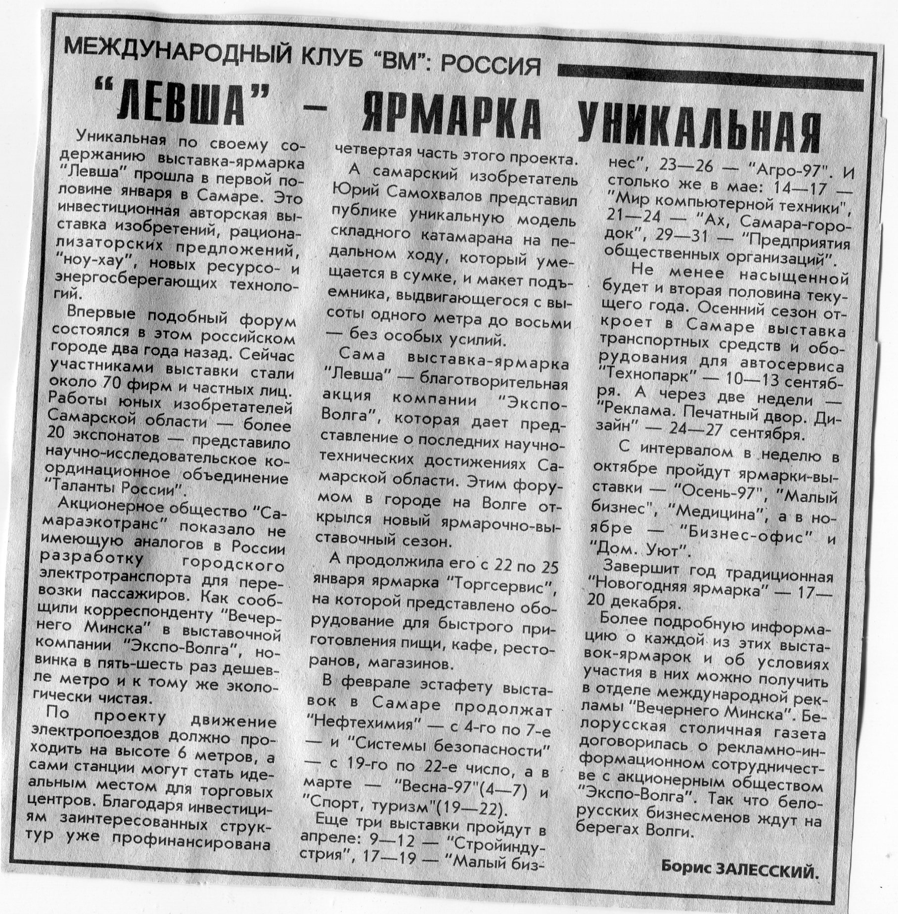 Залесский, Б. "Левша" - ярмарка уникальная / Б. Залесский // Вечерний Минск. - 1997. - 22 янв.