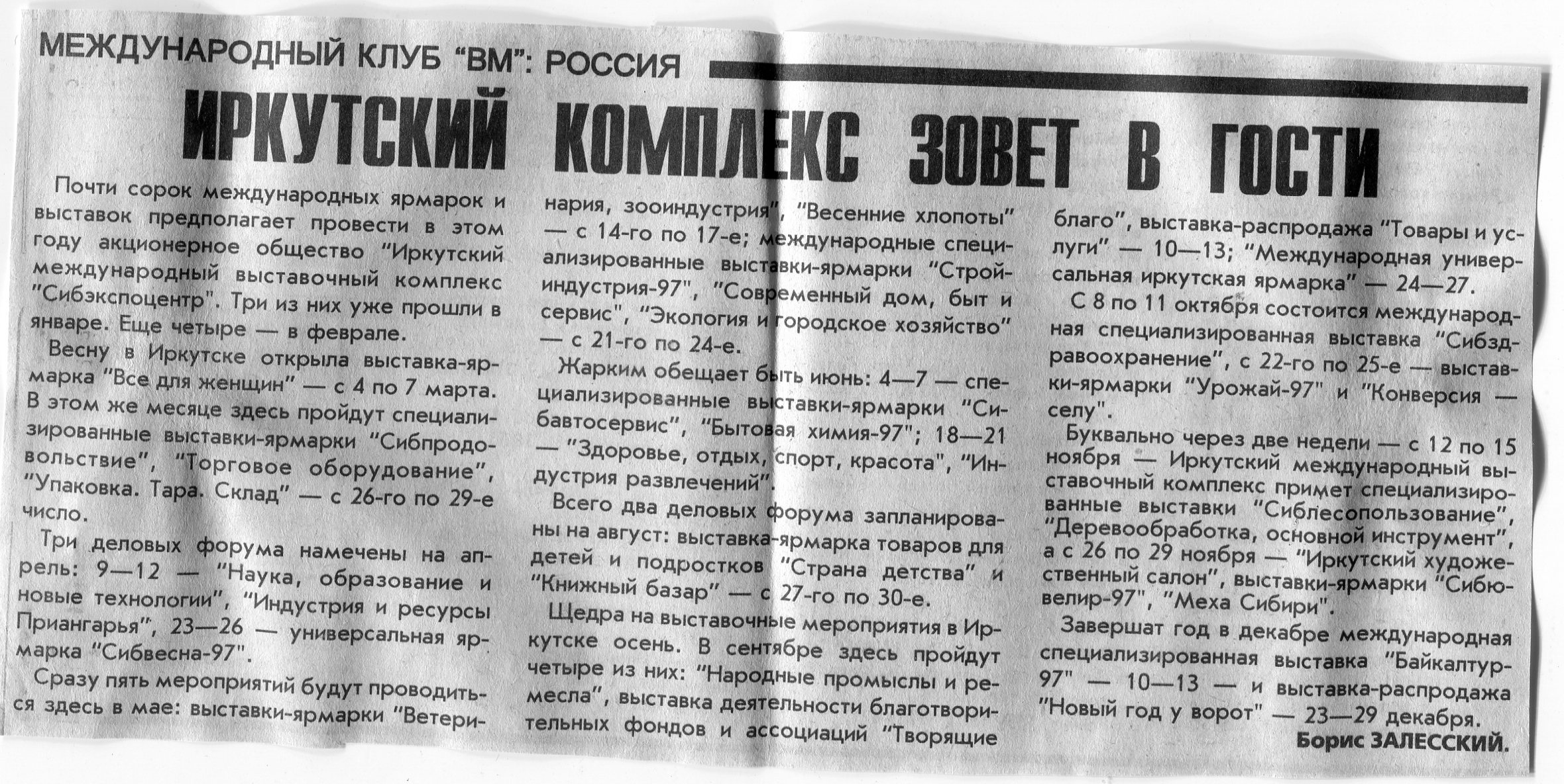 Залесский, Б. Международный клуб "ВМ" / Б. Залесский // Вечерний Минск. - 1997. - 12 февр.