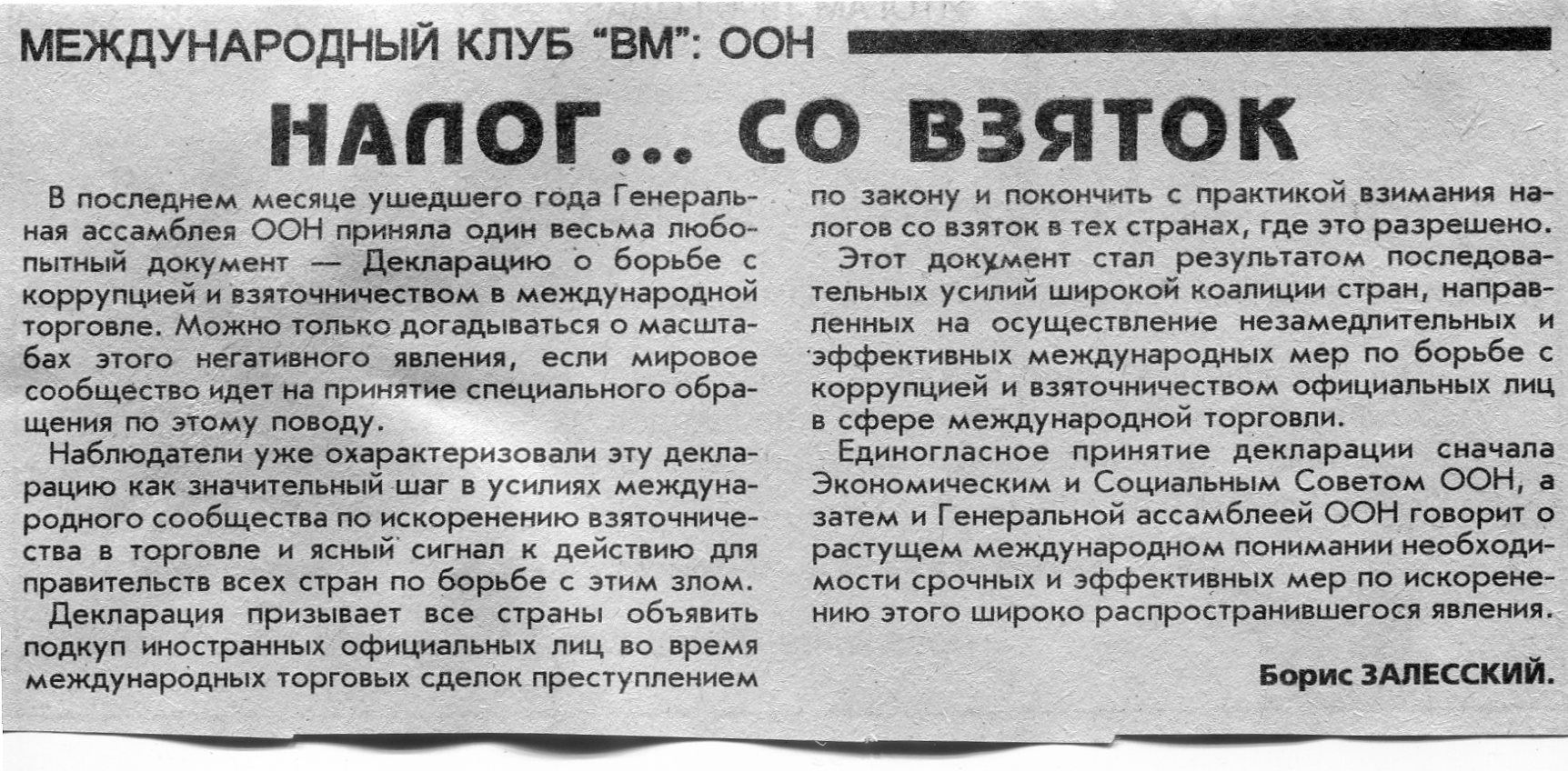 Залесский, Б. Налог ... со взяток / Б. Залесский // Вечерний Минск. - 1997. - 23 янв.