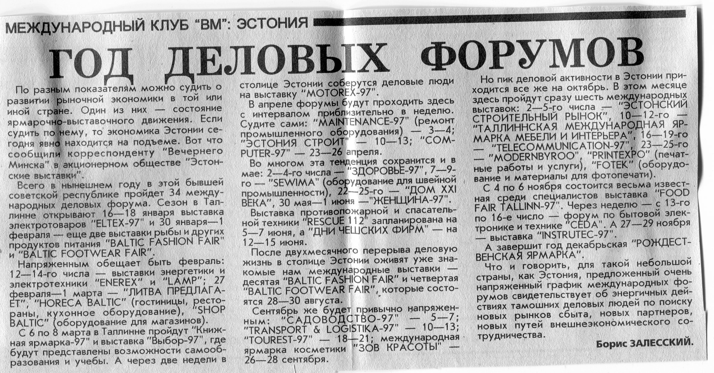 Залесский, Б. Год деловых форумов / Б. Залесский // Вечерний Минск. - 1997. - 17 янв.