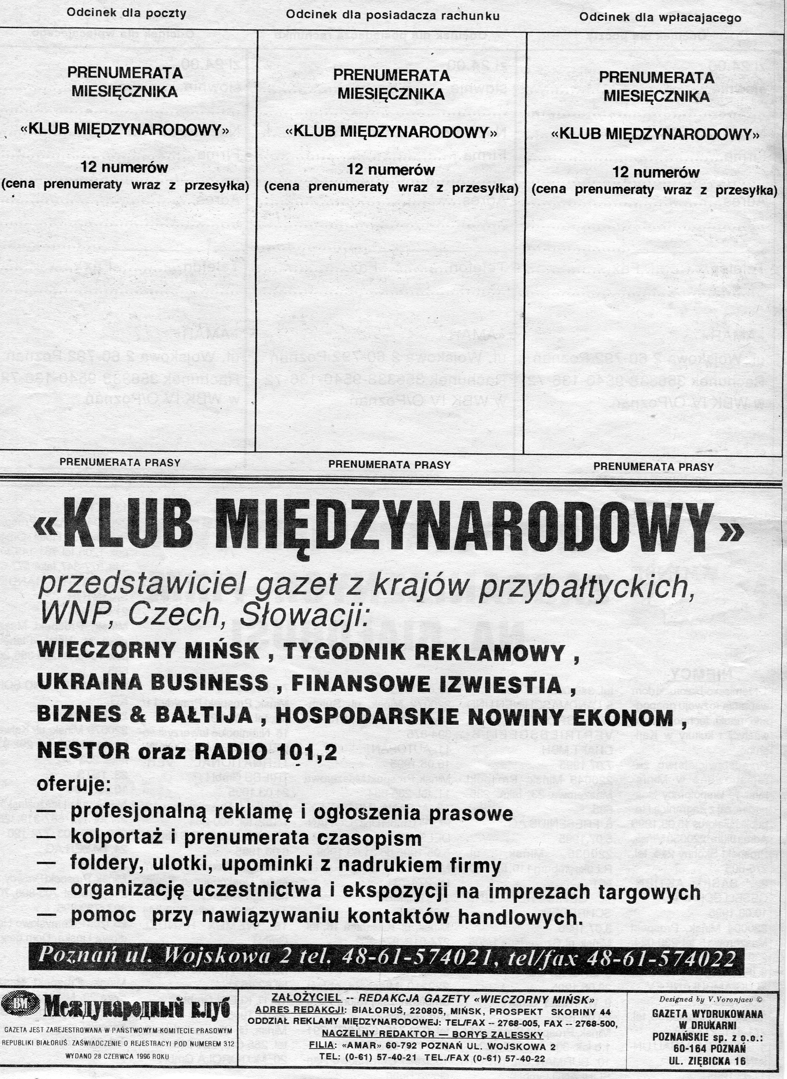 Miedzynarodowy Klub. - 1997. - №2. - С. 8.