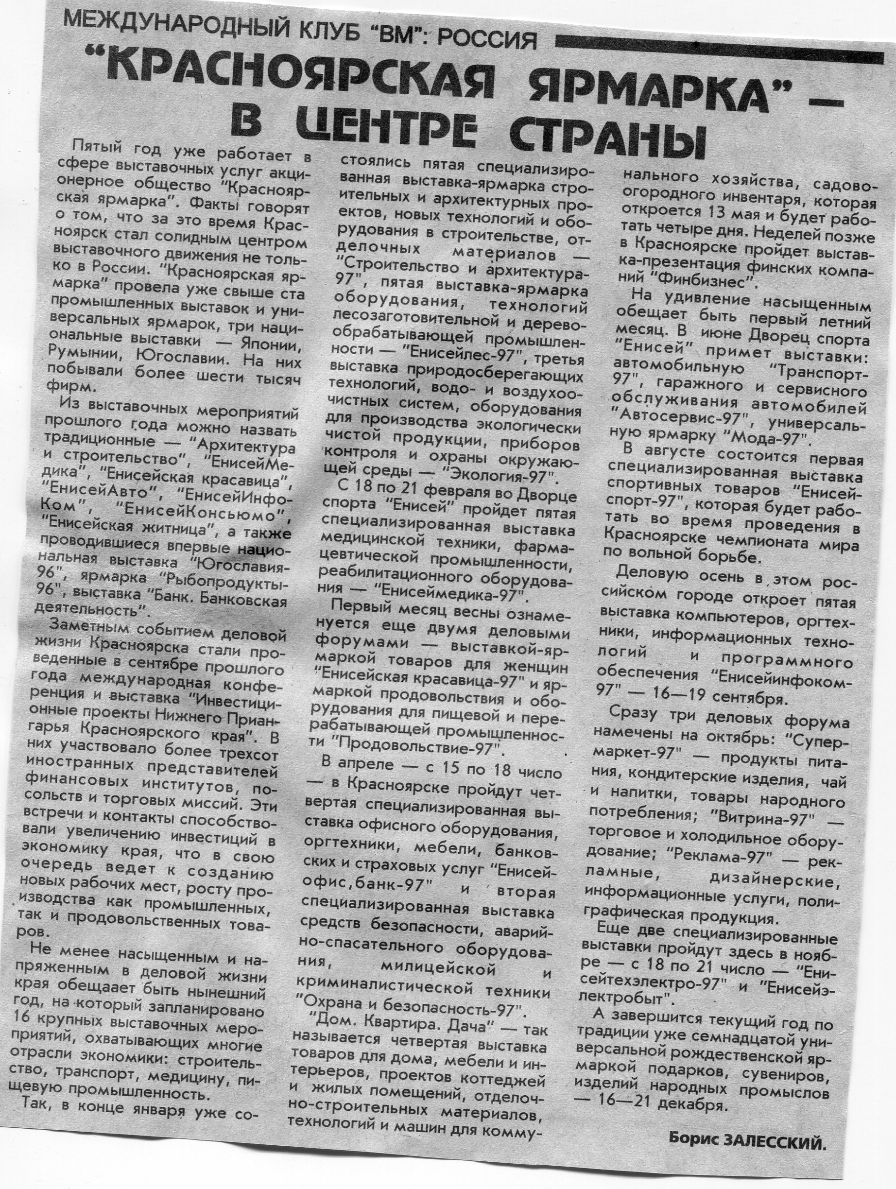 Залесский, Б. "Красноярская ярмарка" - в центре страны / Б. Залесский // Вечерний Минск. - 1997. - 18 февр.