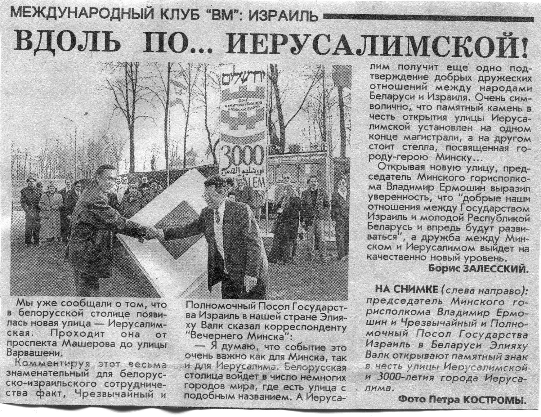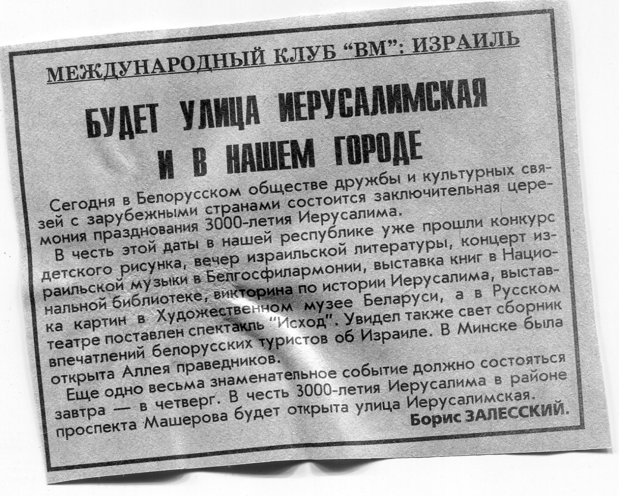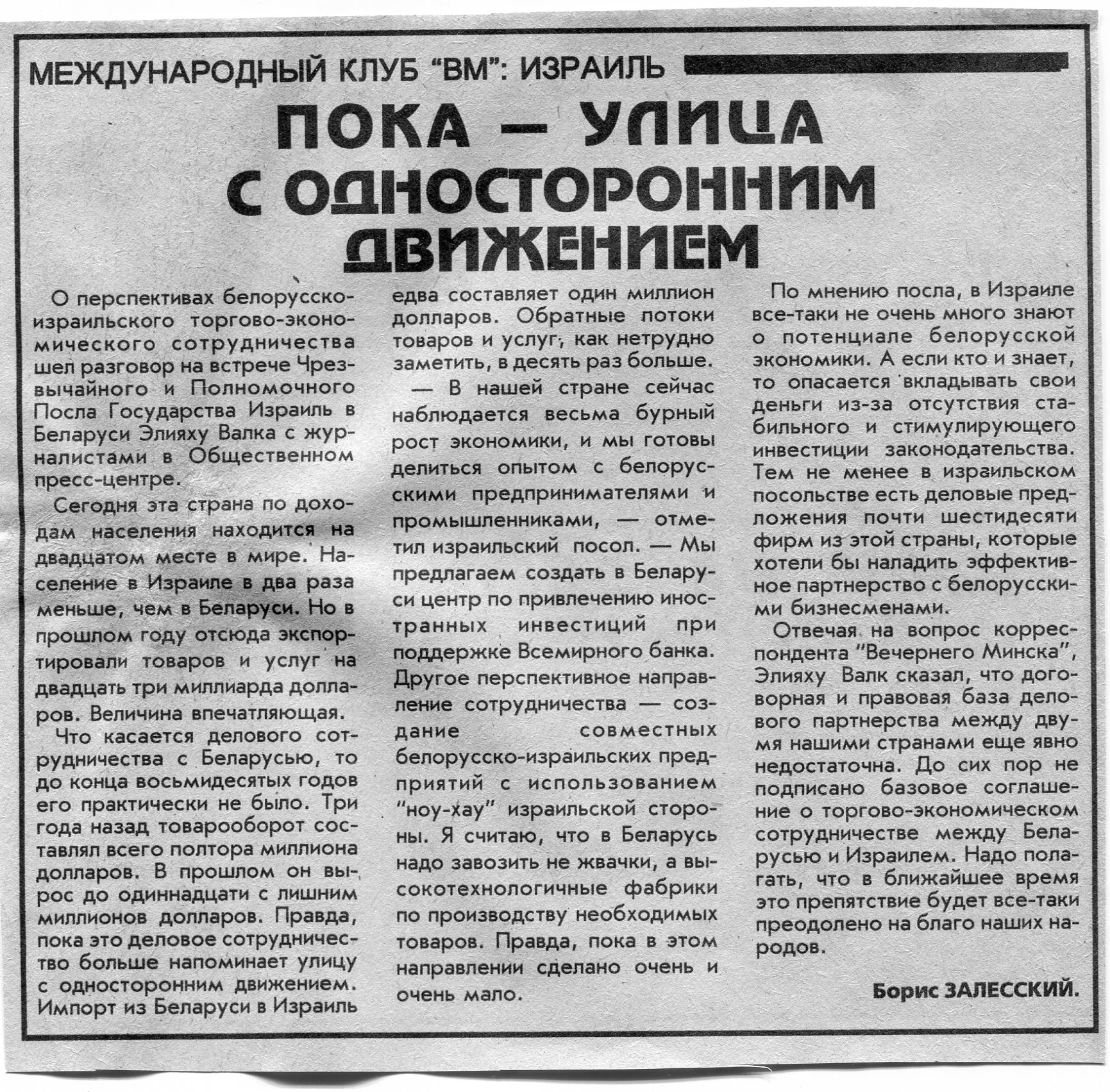 Залесский, Б. Международный клуб "ВМ": Израиль / Б. Залесский // Вечерний Минск. - 1996. - 9 окт.