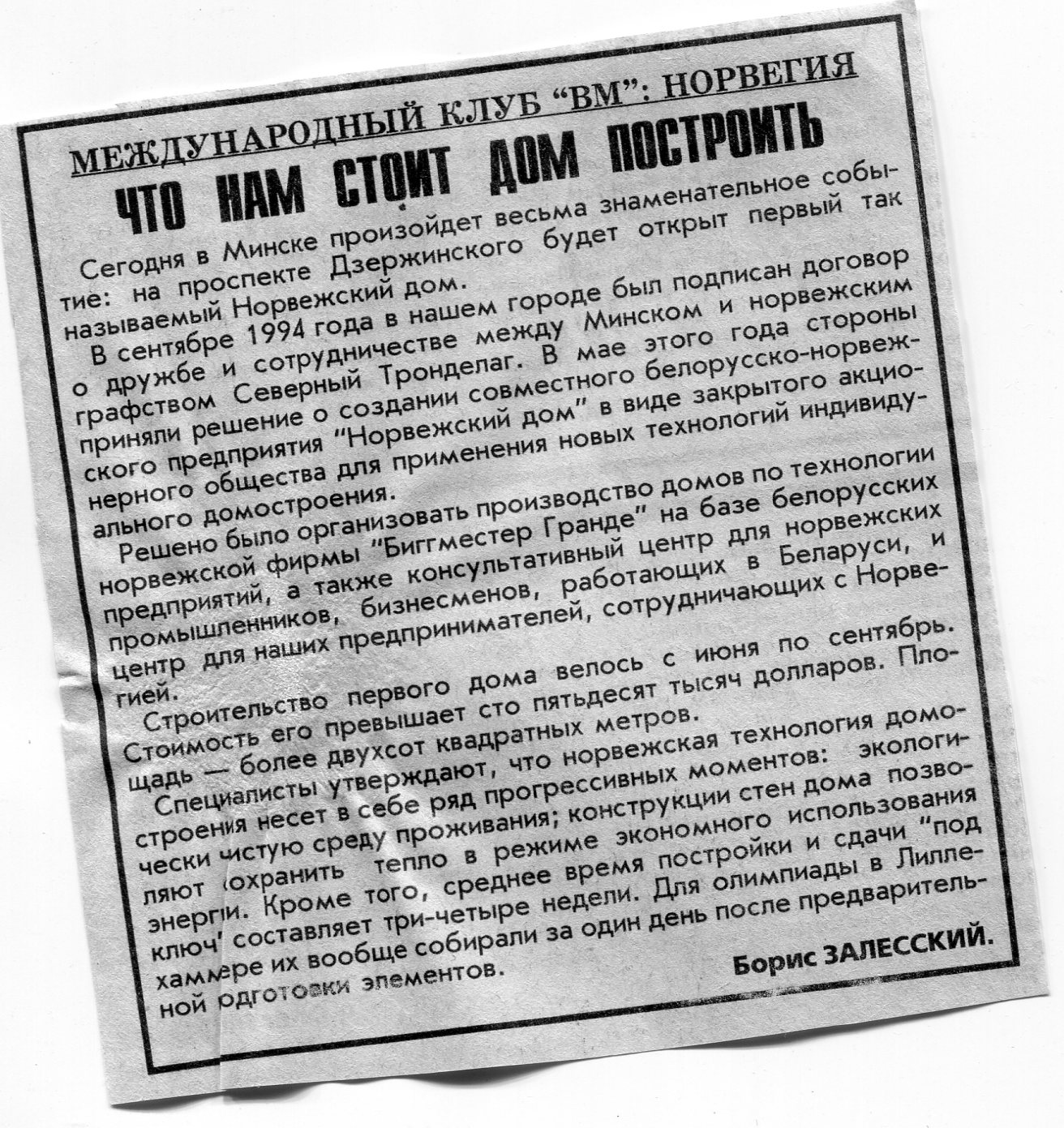 Залесский, Б. Что нам стоит дом построить / Б. Залесский // Вечерний Минск. - 1996. - 18 окт.