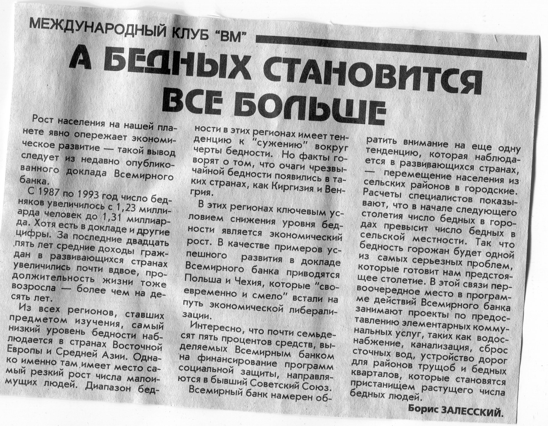Залесский, Б. А бедных становится все больше / Б. Залесский // Вечерний Минск. - 1996. - 31 июл.