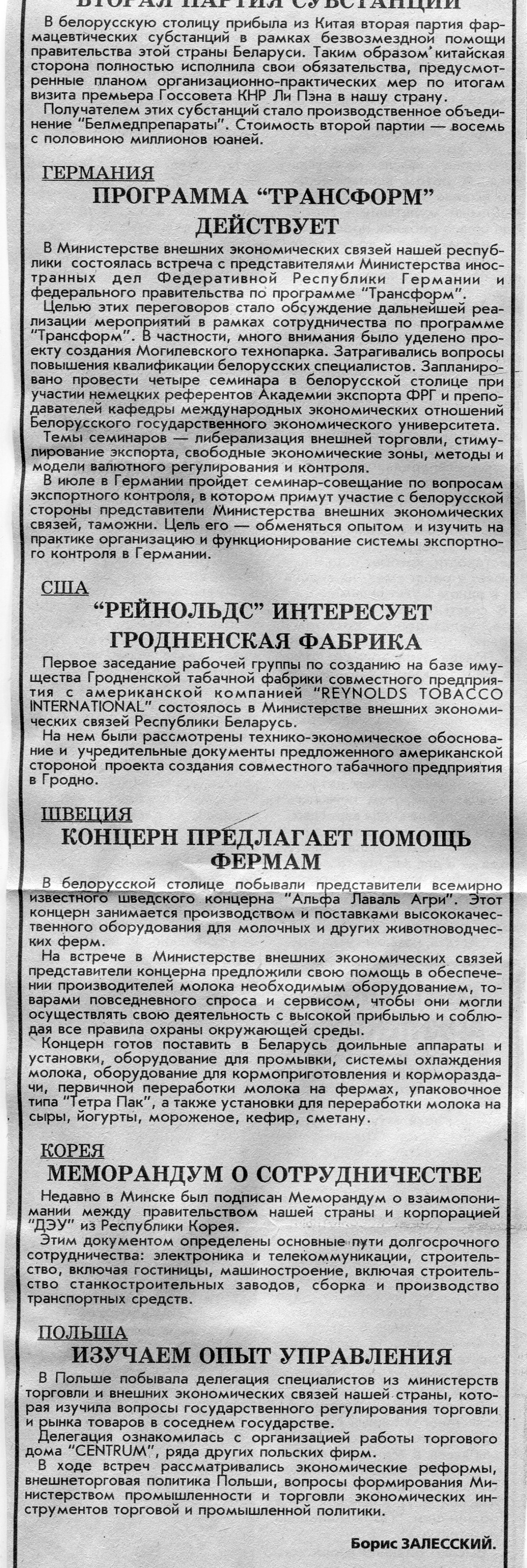 Залесский, Б. База для партнерства есть / Б. Залесский // Вечерний Минск. - 1996. - 30 июл.