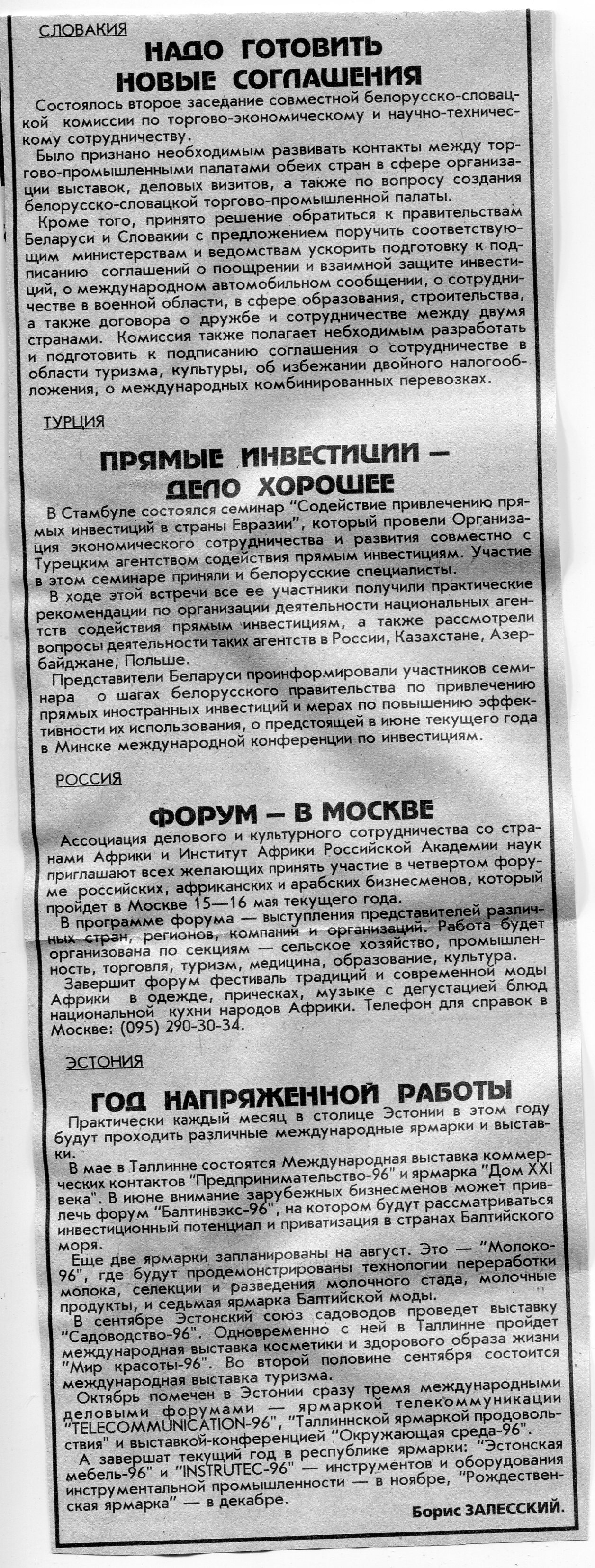 Залесский, Б. Партнерство надо развивать / Б. Залесский // Вечерний Минск. - 1996. - 12 июн.