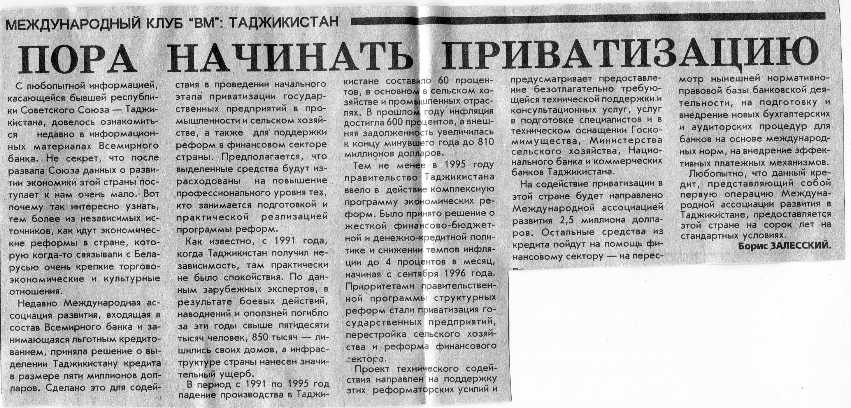 Залесский, Б. Пора начинать приватизацию / Б. Залесский // Вечерний Минск. - 1996. - 19 июн.