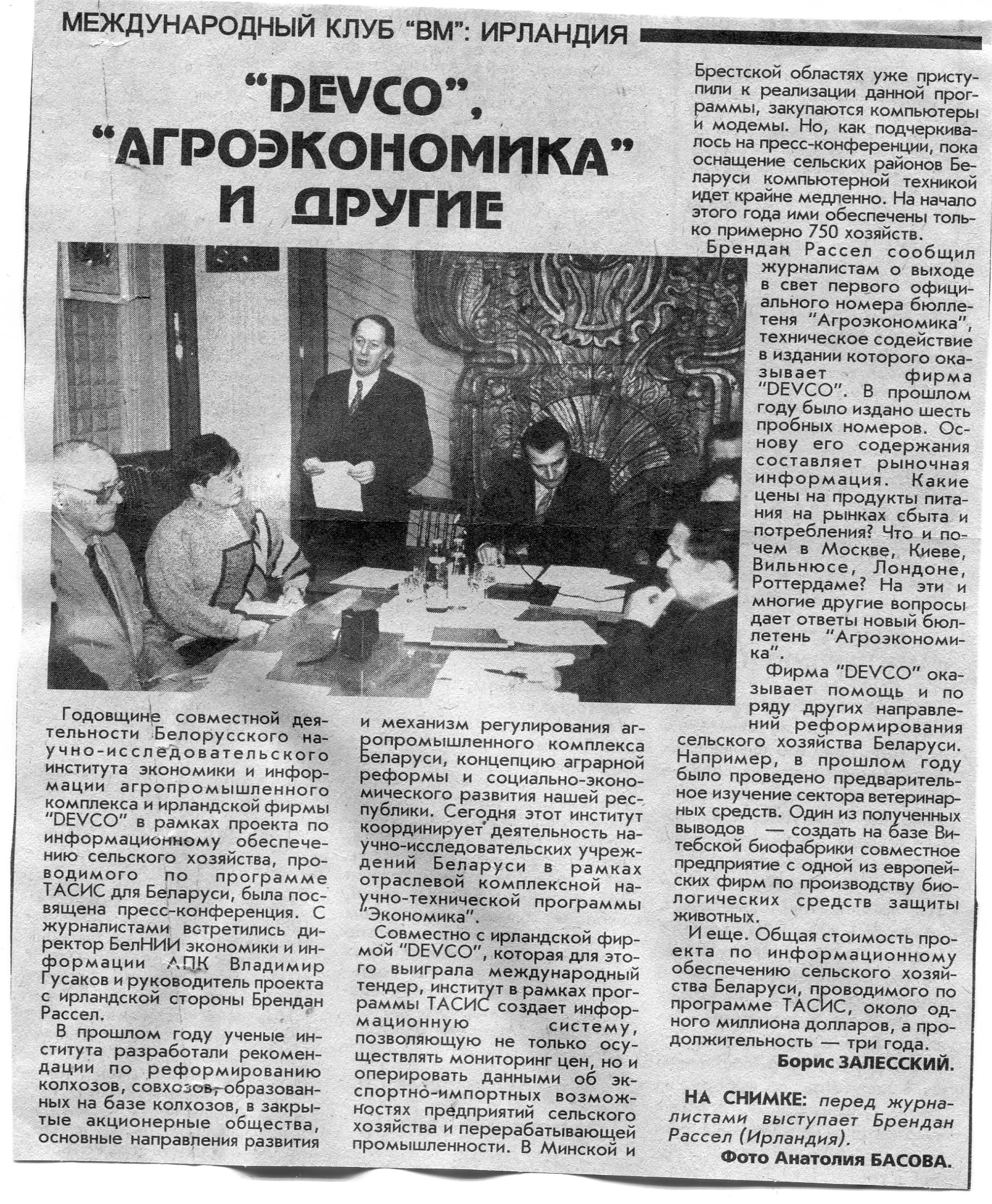 Залесский, Б. "DEVCO", "Агроэкономика" и другие / Б. Залесский // Вечерний Минск. - 1996. - 16 февр.