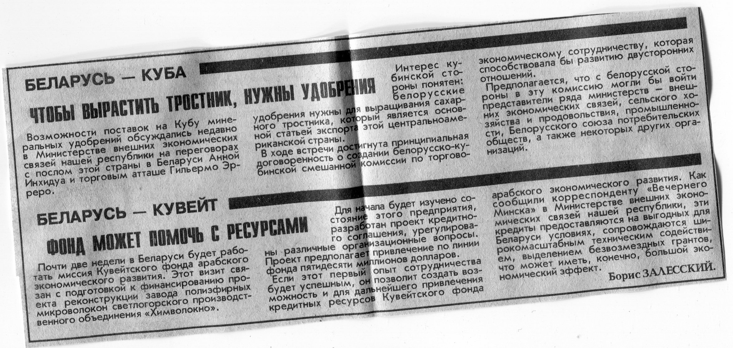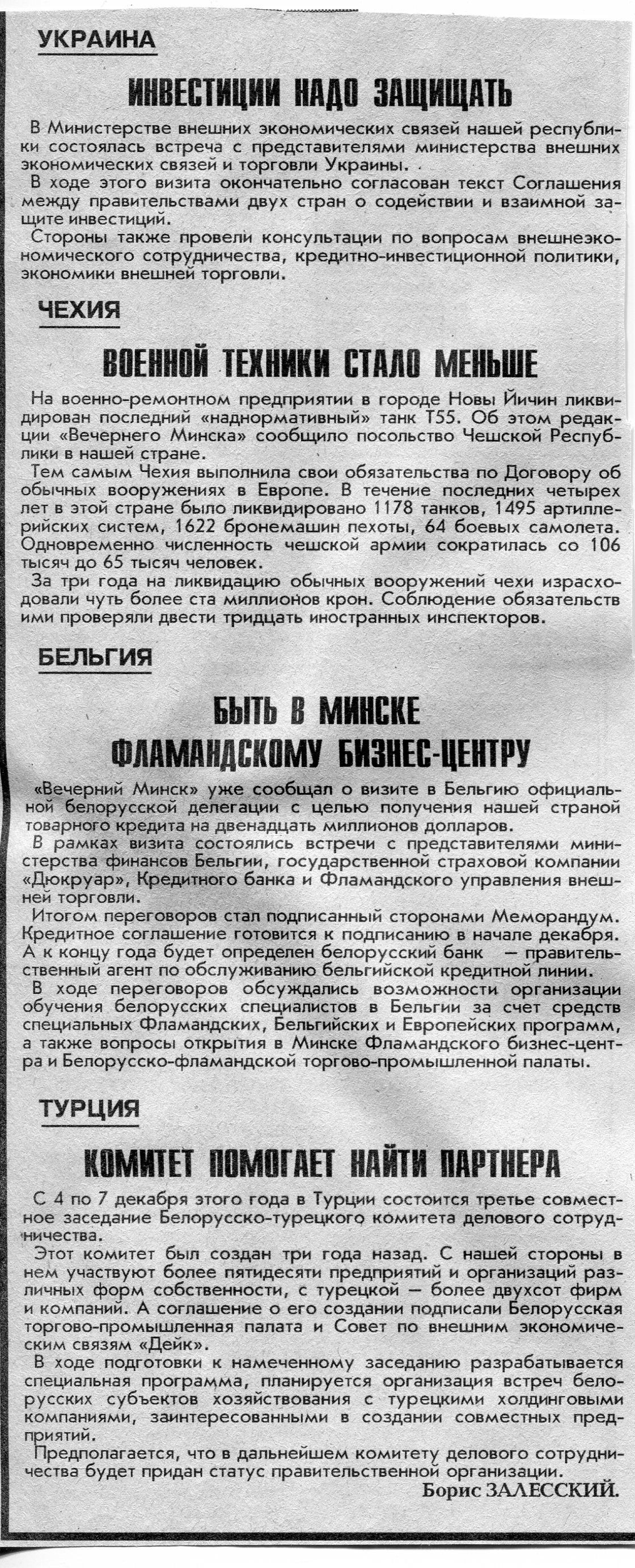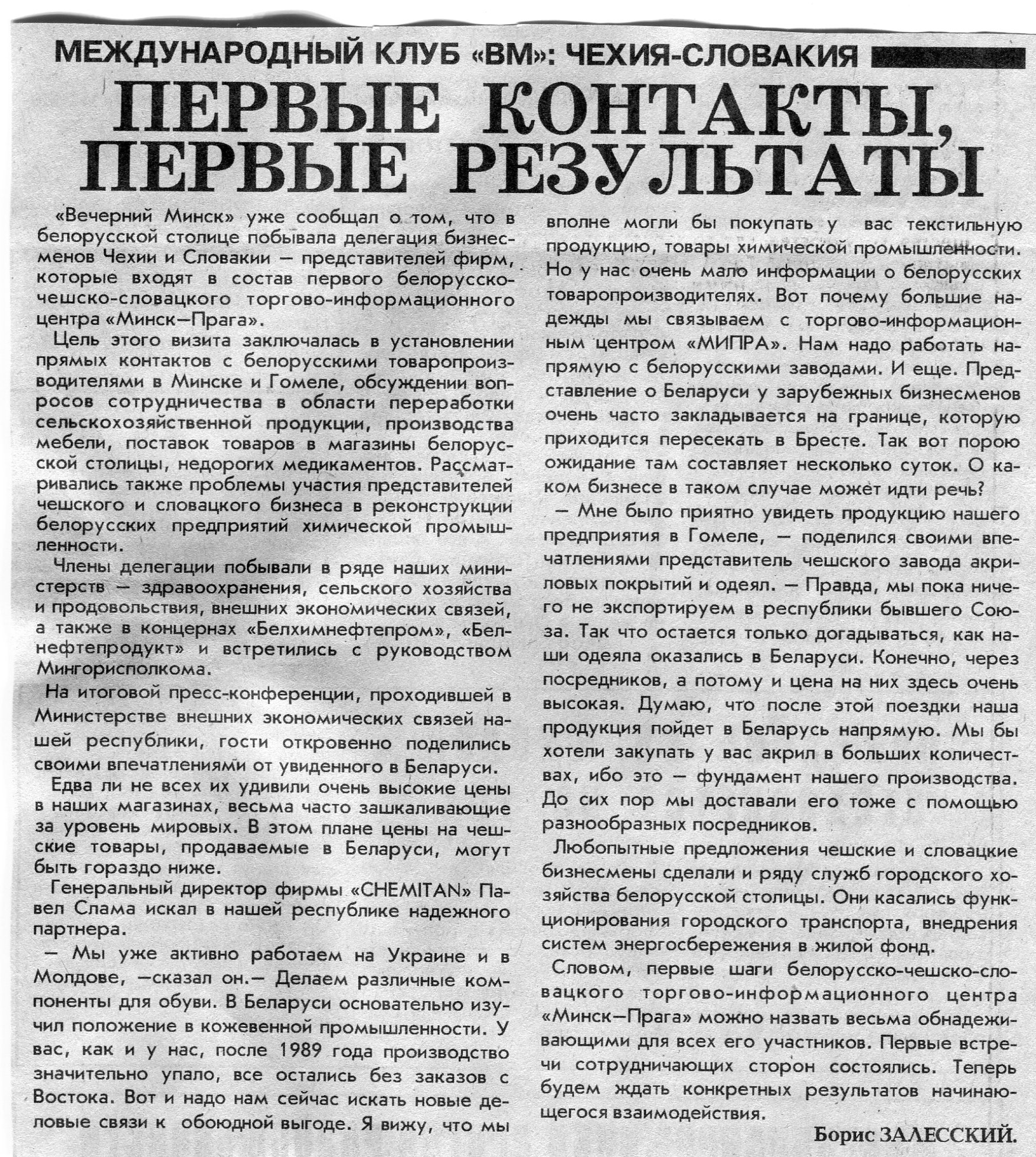 Залесский, Б. Первые контакты, первые результаты / Б. Залесский // Вечерний Минск. - 1995. - 30 нояб.