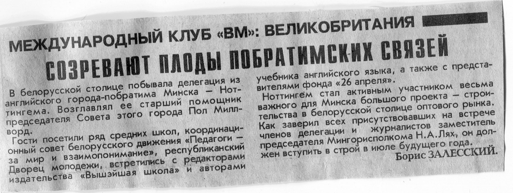 Залесский, Б. Созревают плоды побратимских связей / Б. Залесский // Вечерний Минск. - 1995. - 4 дек.