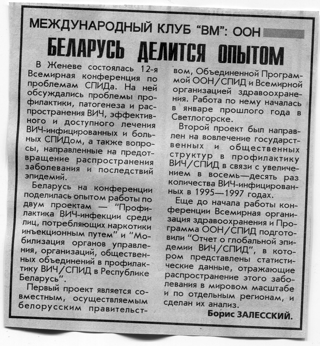 Залесский, Б. Международный клуб "ВМ" / Б. Залесский // Вечерний Минск. - 1998. - 16 июн.