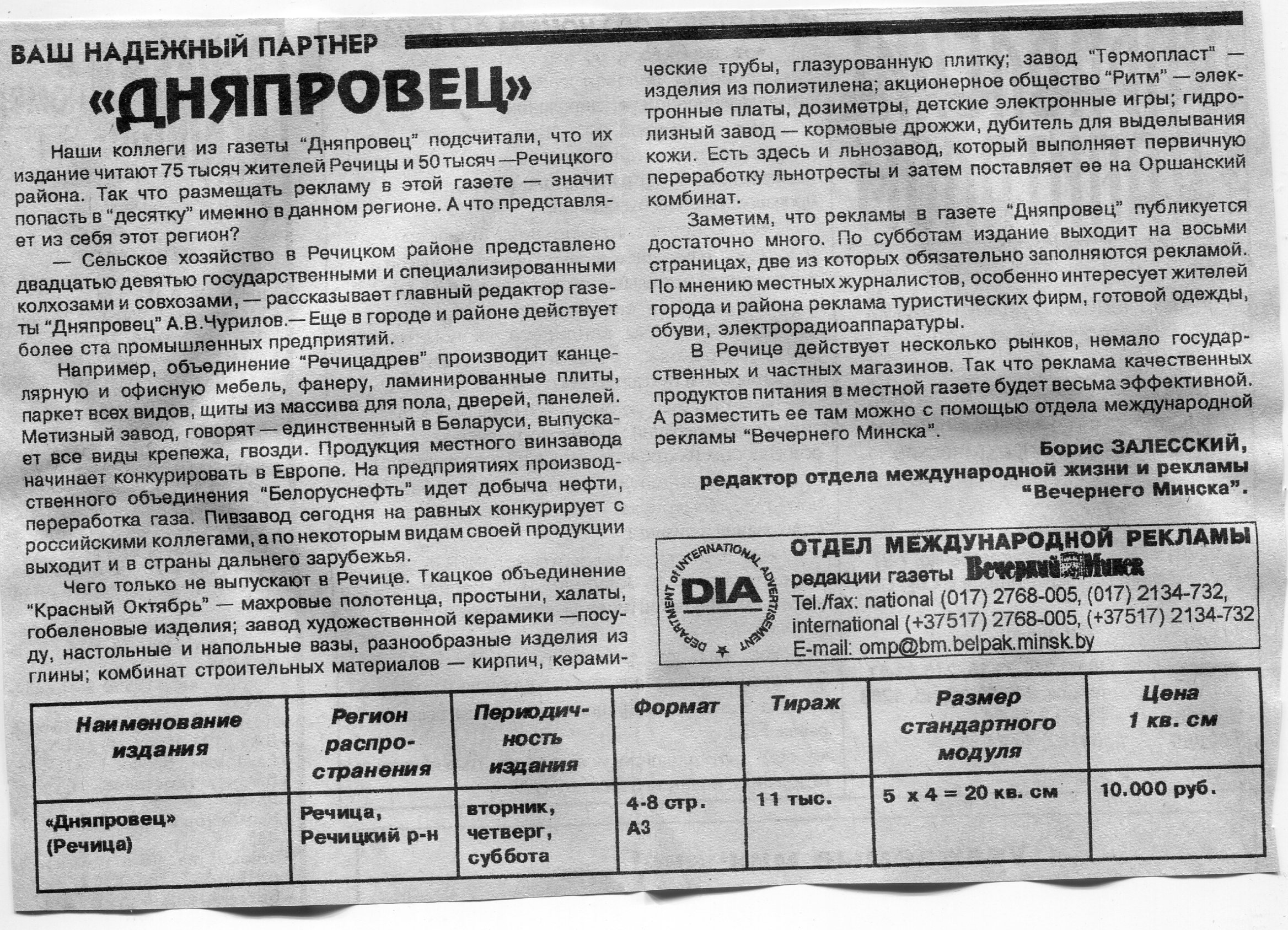 Залесский, Б. "Дняпровец" / Б. Залесский // Вечерний Минск. - 1997. - 30 апр.