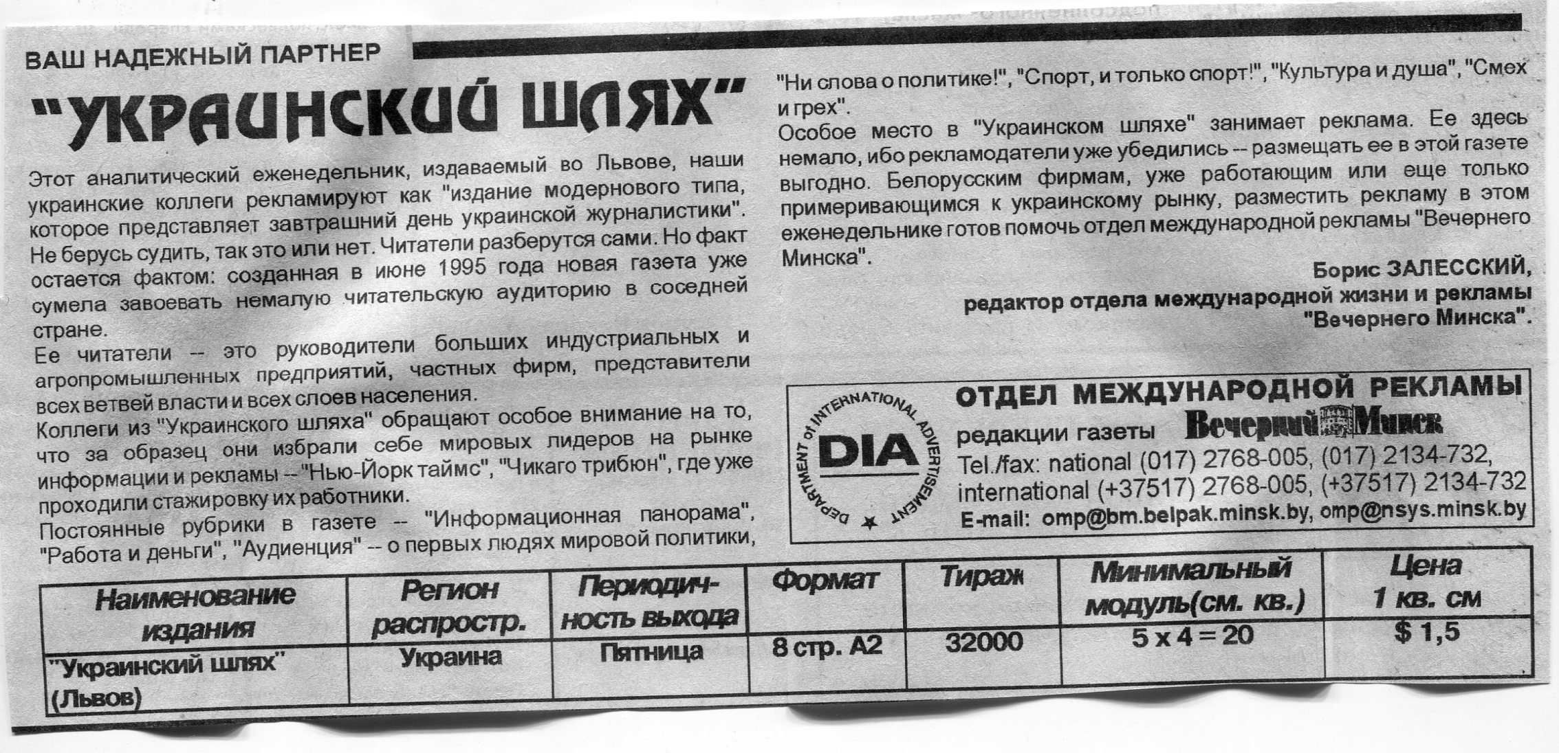 Залесский, Б. "Украинский шлях" / Б. Залесский // Вечерний Минск. - 1997. - 7 июл.
