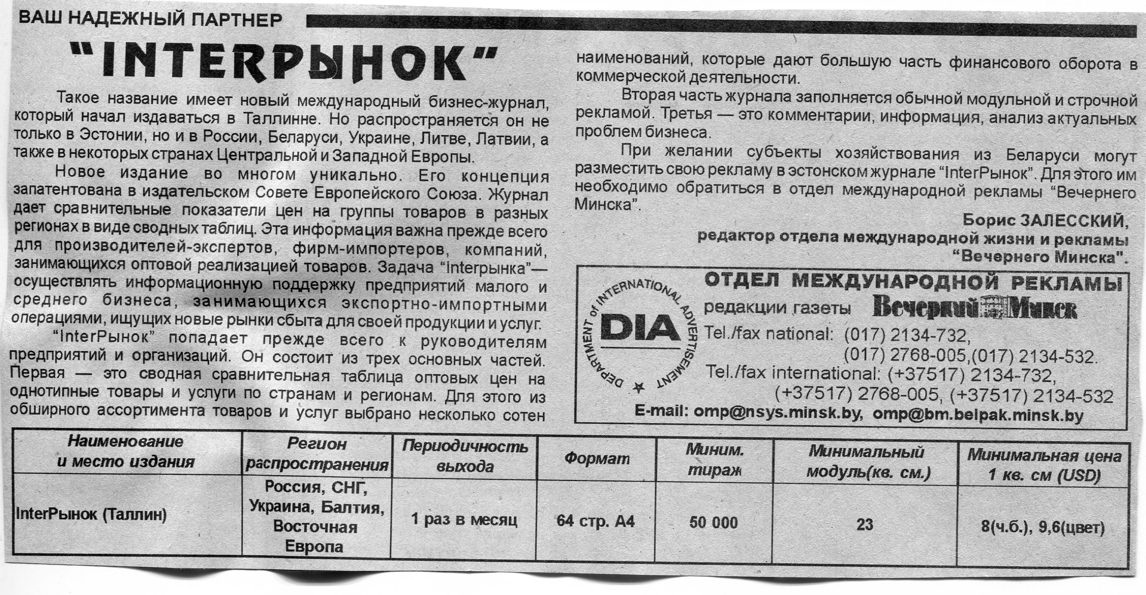 Залесский, Б. "InterРынок" / Б. Залесский // Вечерний Минск. – 1998. – 6 июл.