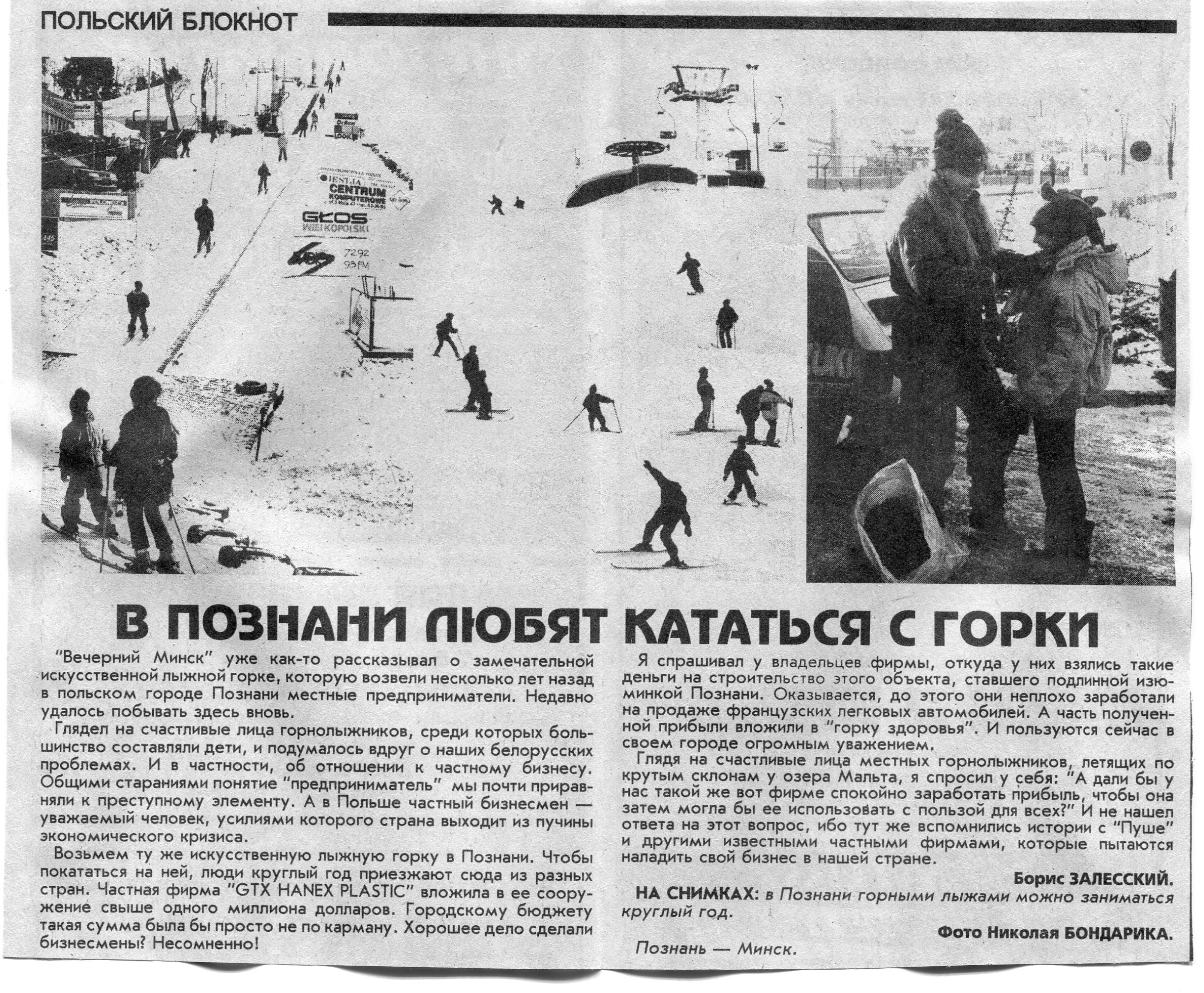 Залесский, Б. В Познани любят кататься с горки / Б. Залесский // Вечерний Минск. - 1996. - 5 февр.