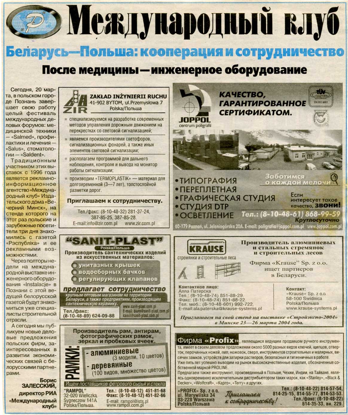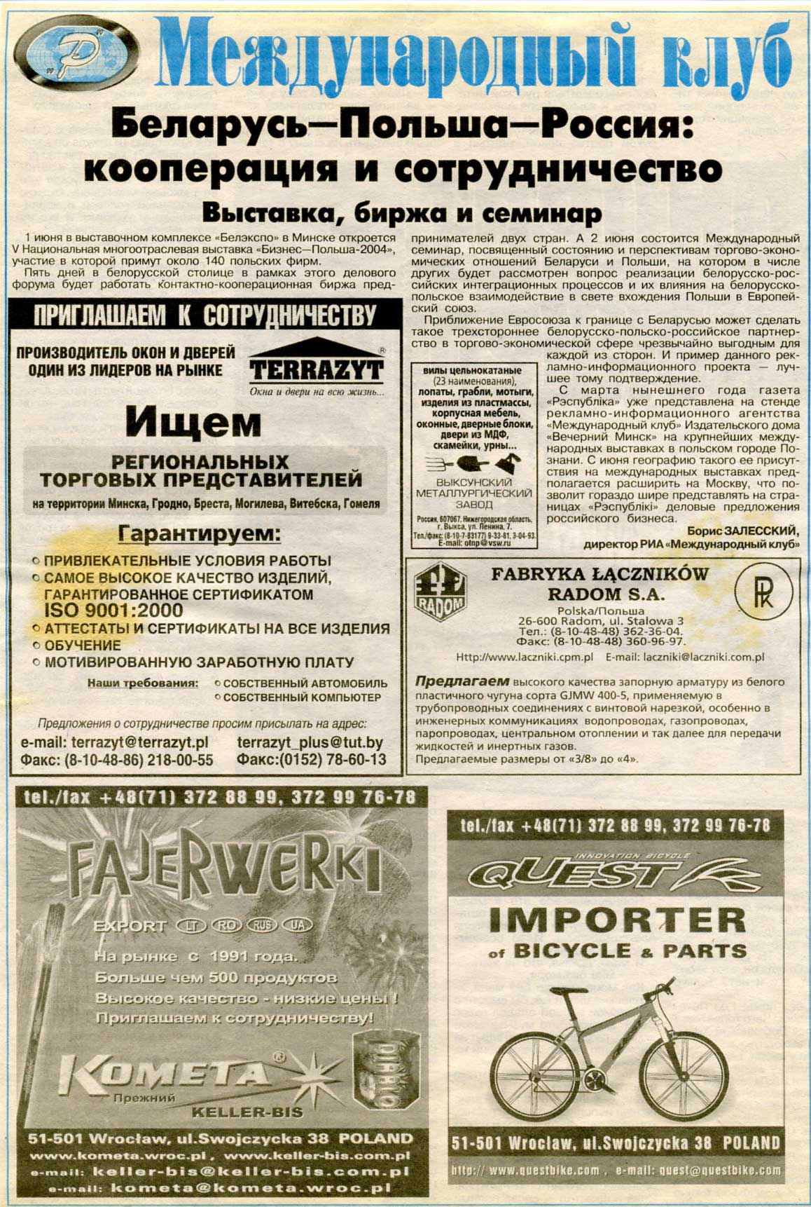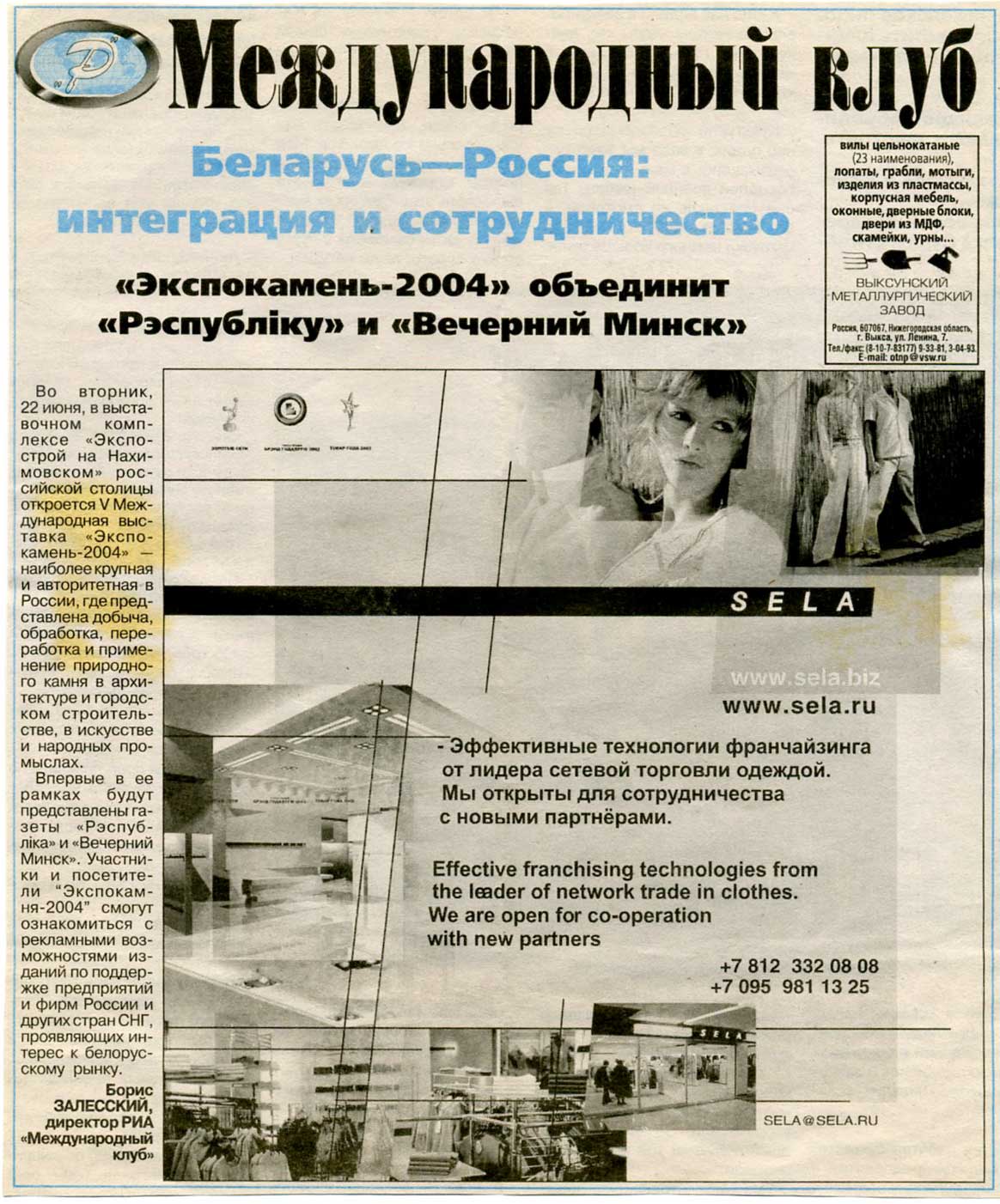 Залесский, Б. Выставка, биржа и семинар / Б. Залесский // Рэспубліка. – 2004. – 22 мая.