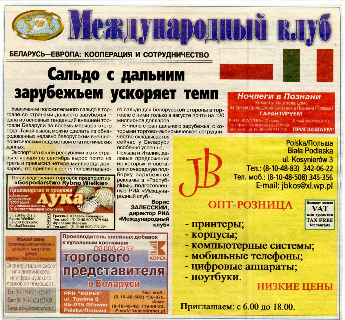 Залесский, Б. Сальдо с дальним зарубежьем ускоряет темп / Б. Залесский // Рэспубліка. – 2004. – 23 окт.