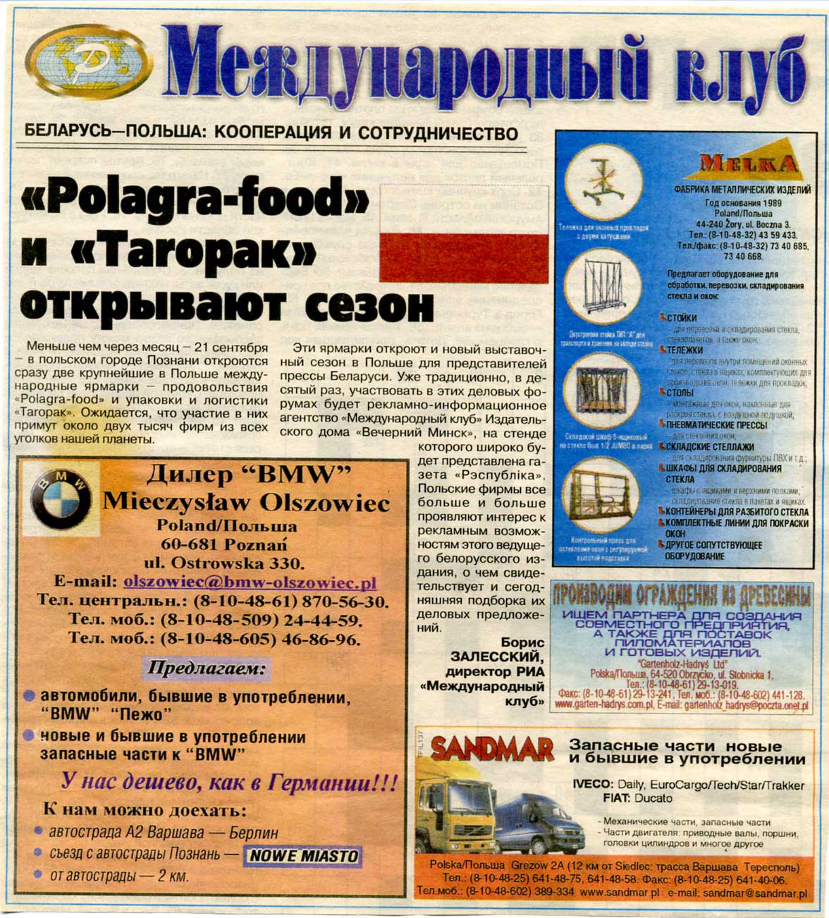 Залесский, Б. «Polagra-food» и «Taropak» открывают сезон / Б. Залесский // Рэспубліка. – 2004. – 28 авг.
