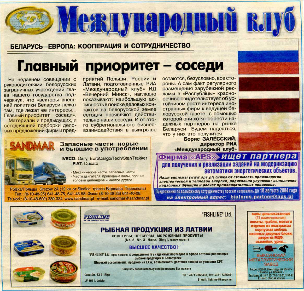 Залесский, Б. Главный приоритет – соседи / Б. Залесский // Рэспубліка. – 2004. – 31 июл.