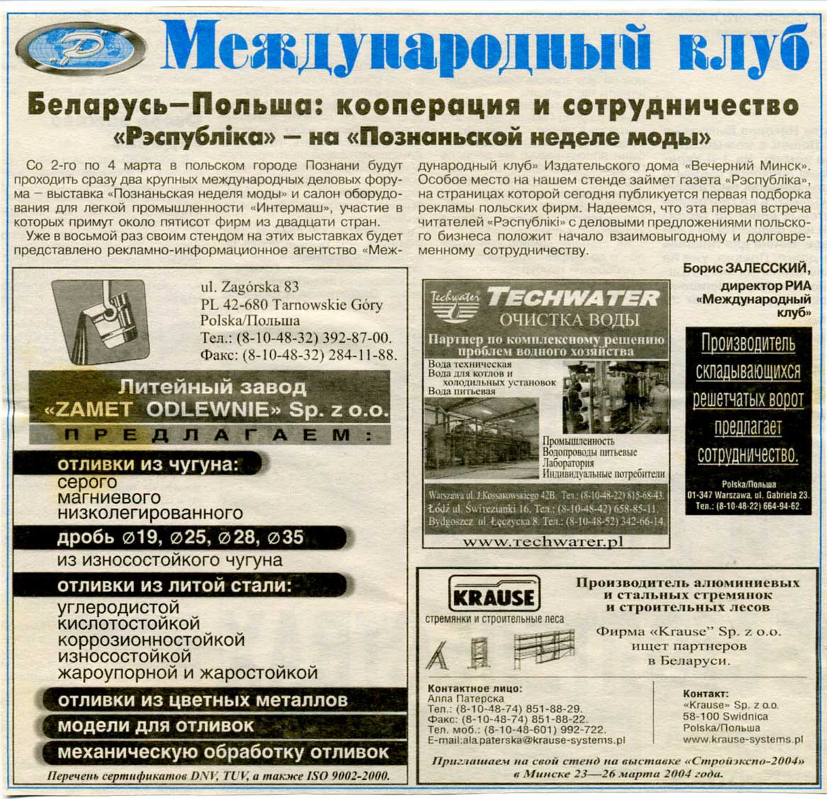 Залесский, Б. «Рэспубліка» – на «Познаньской неделе моды» / Б. Залесский // Рэспубліка. – 2004. – 21 февр.