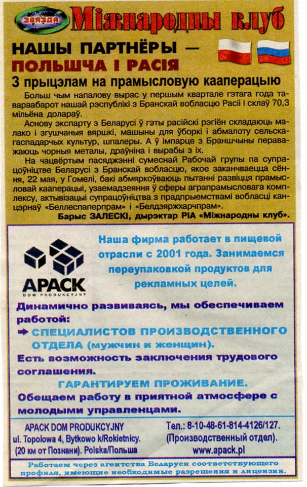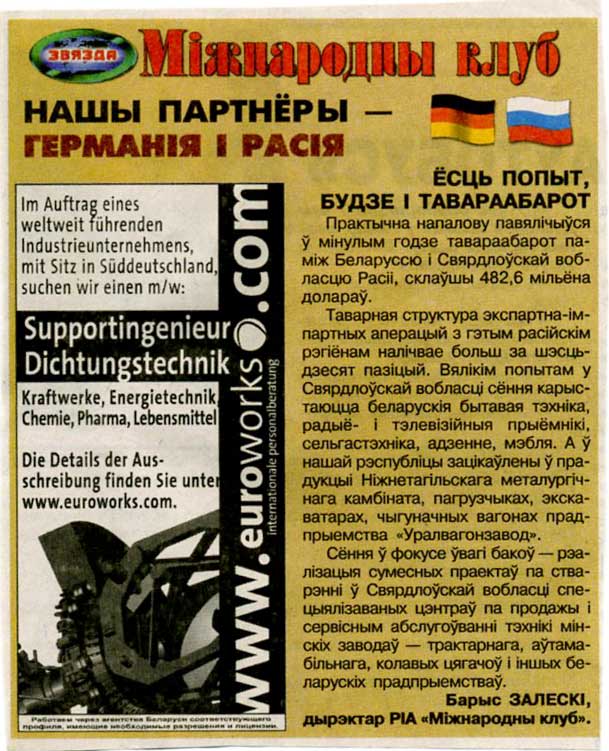 Залескi, Б. Перспектывы партнерства есць. I немалыя / Б. Залескi // Звязда. – 2009. – 12 лiст.