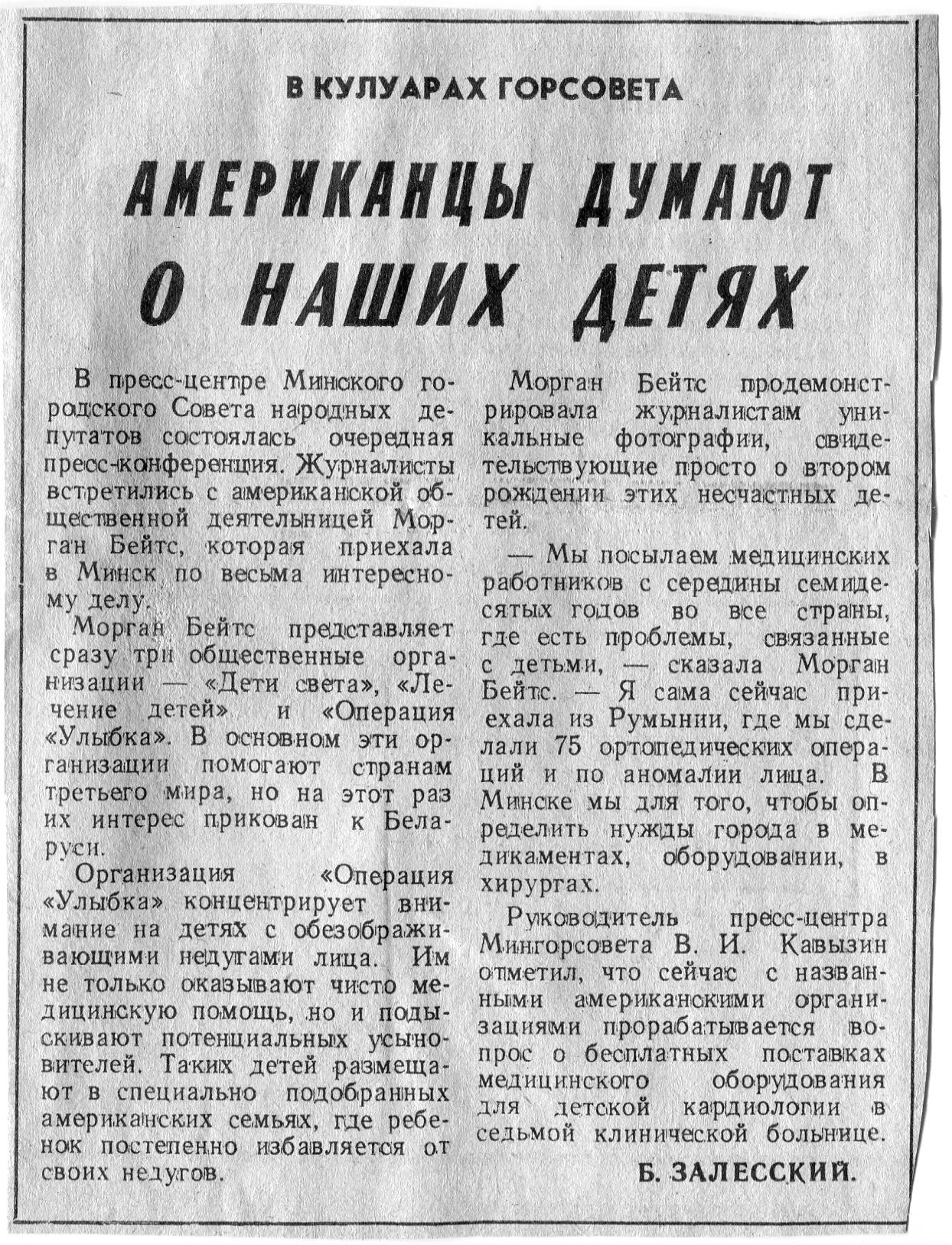 Залесский, Б. Американцы думают о наших детях / Б. Залесский // Вечерний Минск. - 1992.- 5 мар.