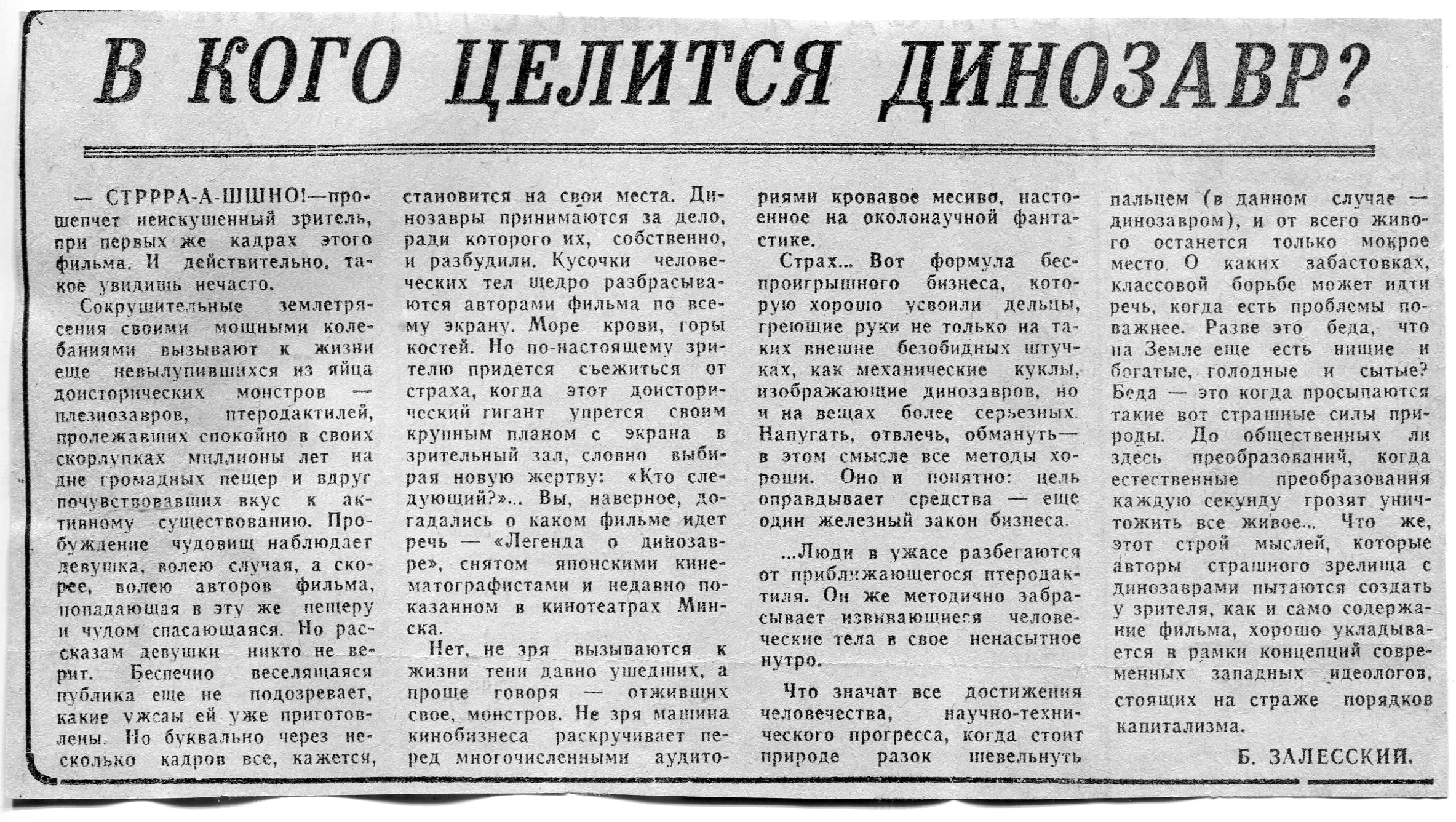 Залесский, Б. В кого целится динозавр? / Б. Залесский // Трактор. - 1979. - 12 июн.