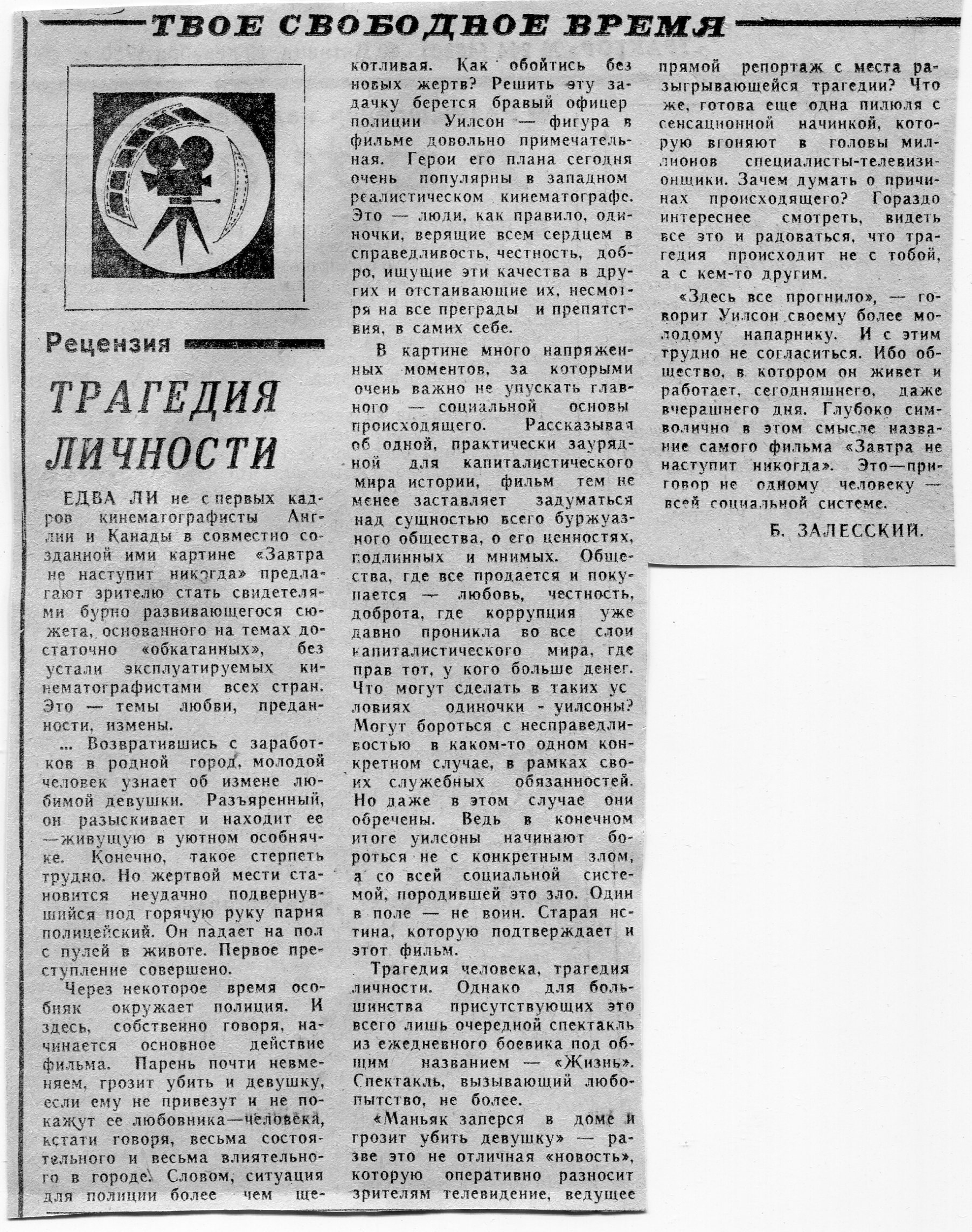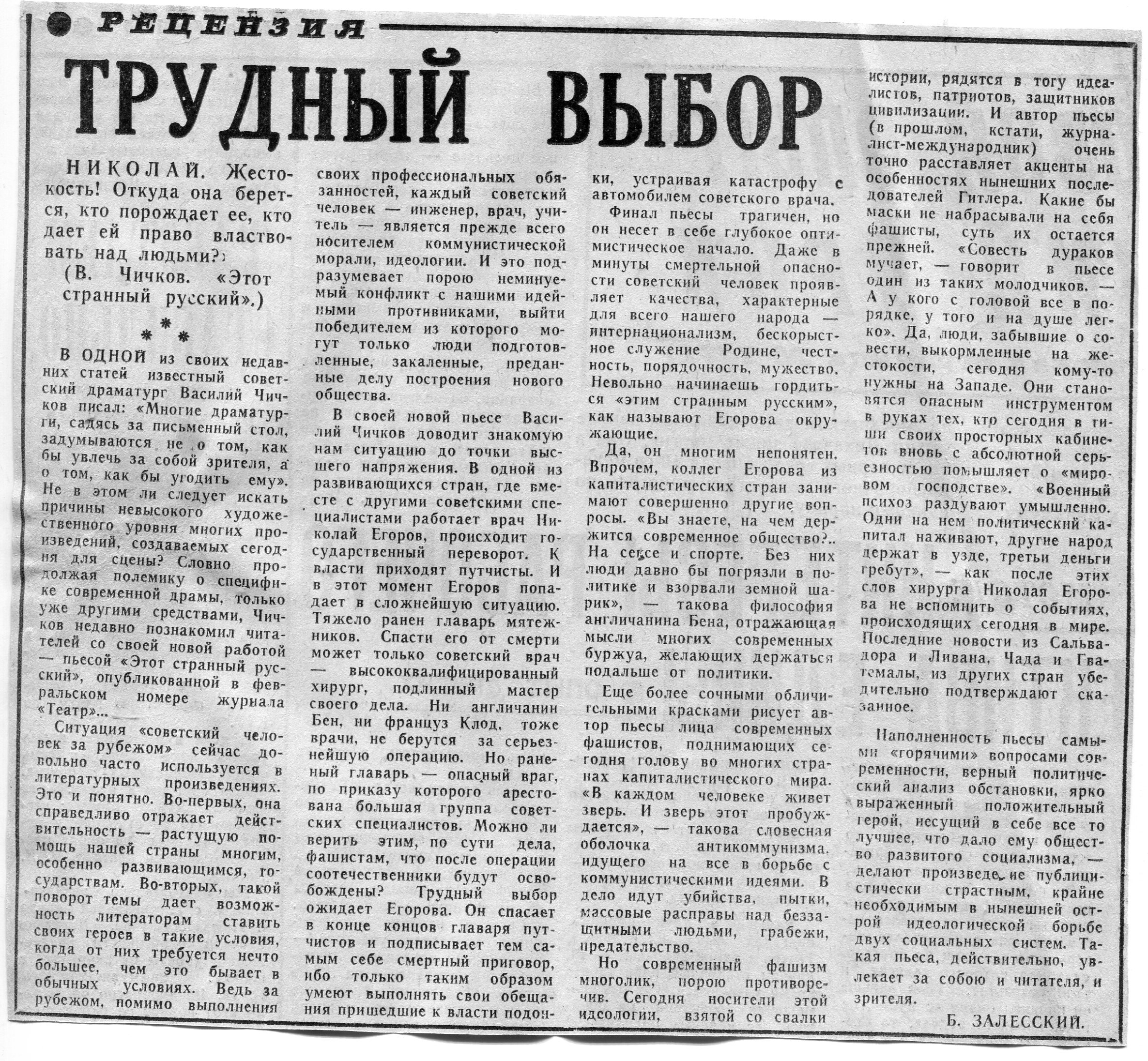 Залесский, Б. Трагедия личности / Б. Залесский // Трактор. - 1980. - 19 дек.