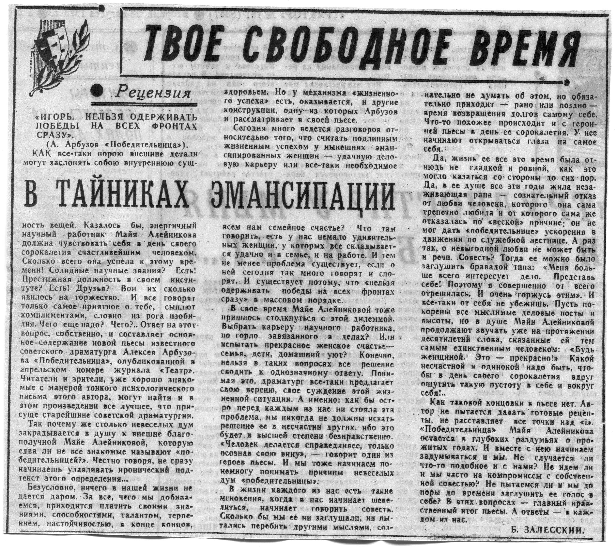 Залесский, Б. В тайниках эмансипации / Б. Залесский // Трактор. - 1983. - 23 авг.