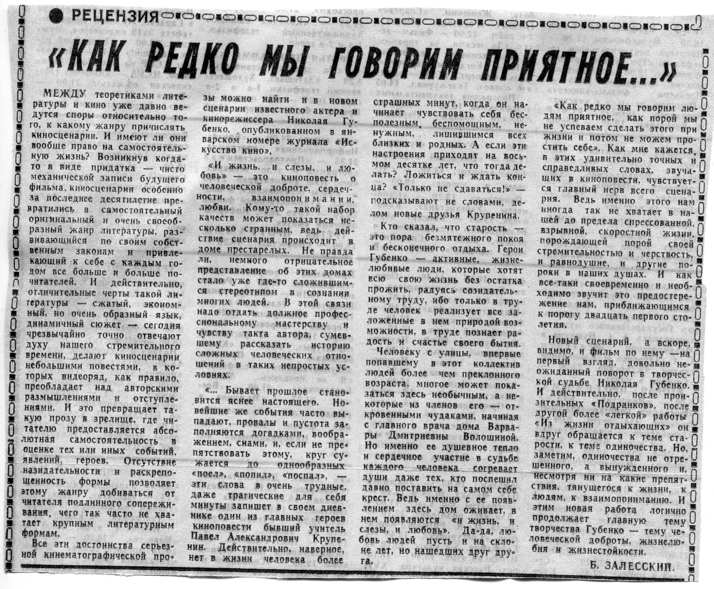 Залесский, Б. "Как редко мы говорим приятное..." / Б. Залесский // Трактор. - 1983. - 12 февр.