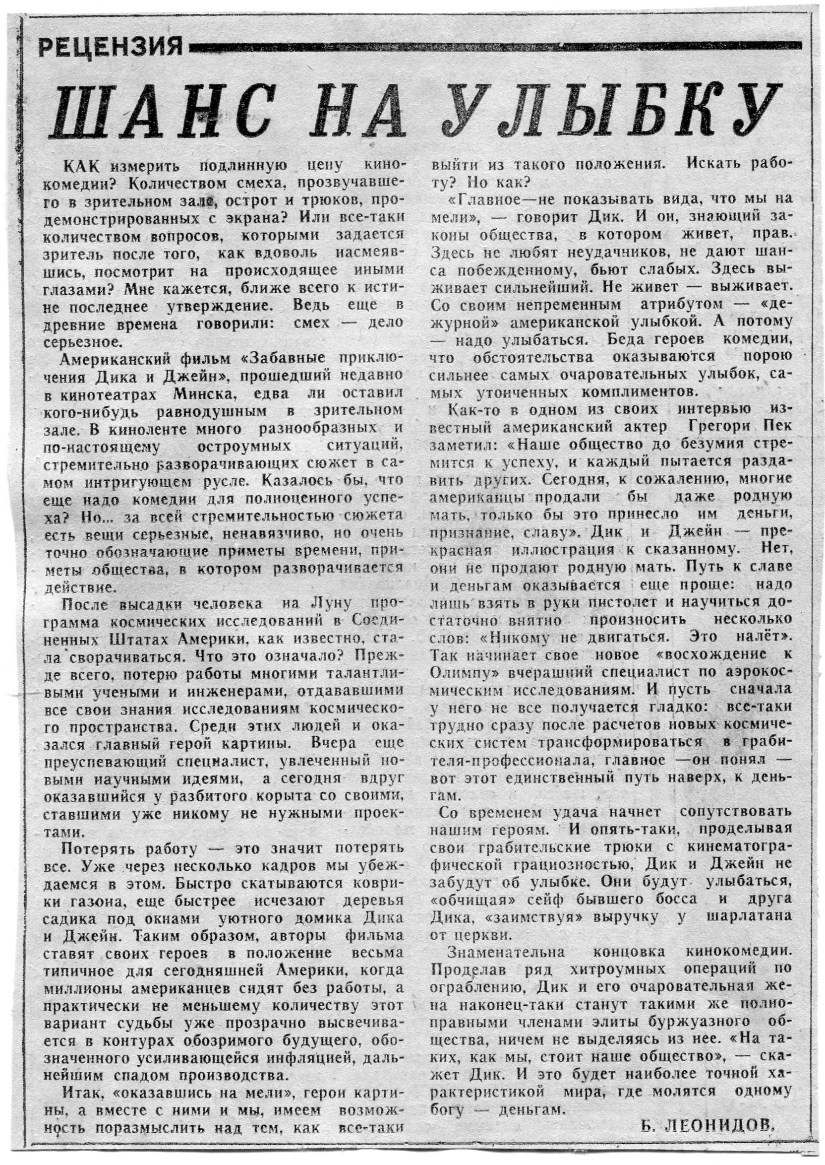 Леонидов, Б. Шанс на улыбку / Б. Залесский // Трактор. - 1980. - 28 мая.