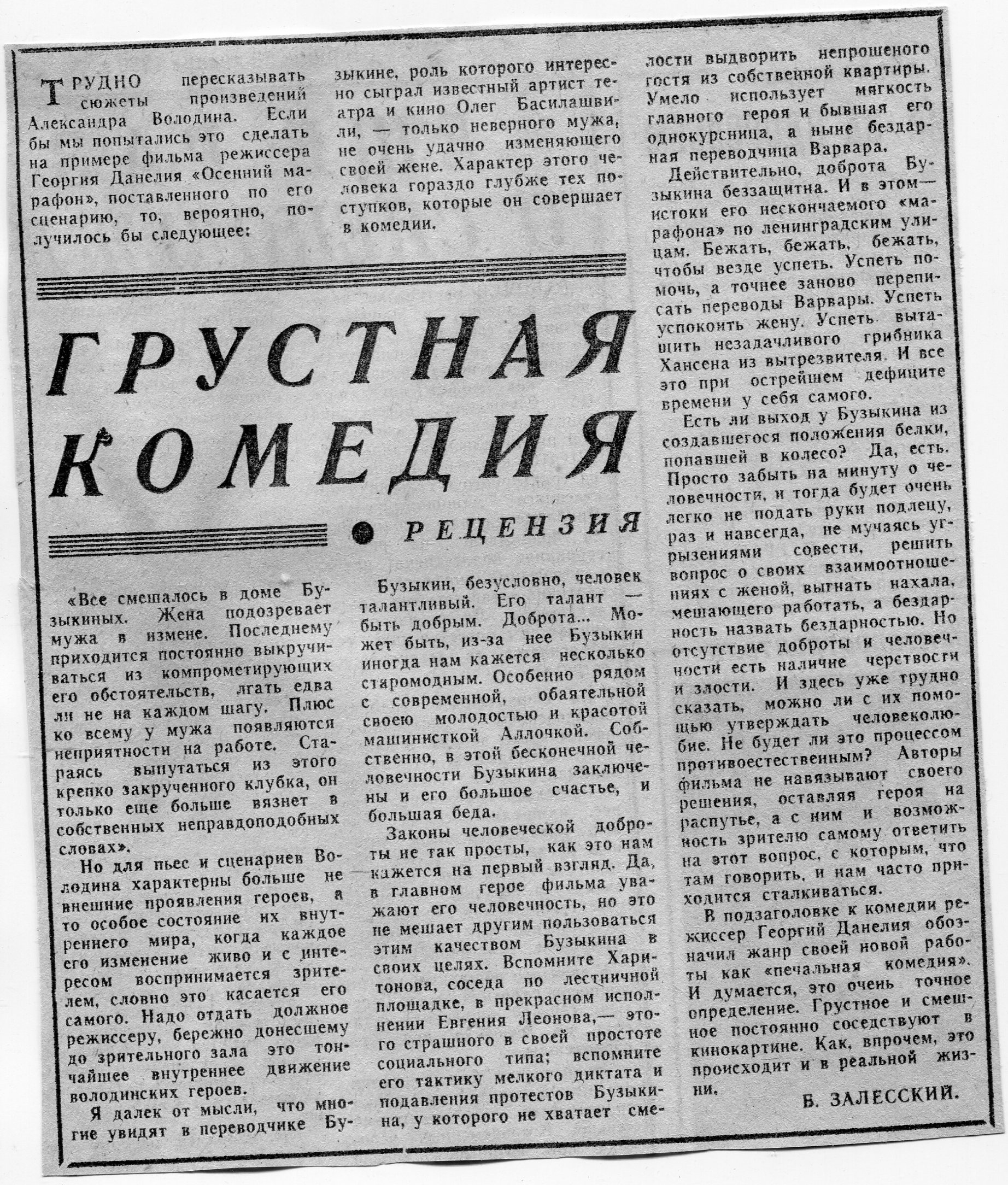 Залесский, Б. Грустная комедия / Б. Залесский // Трактор. - 1980. - 29 янв.